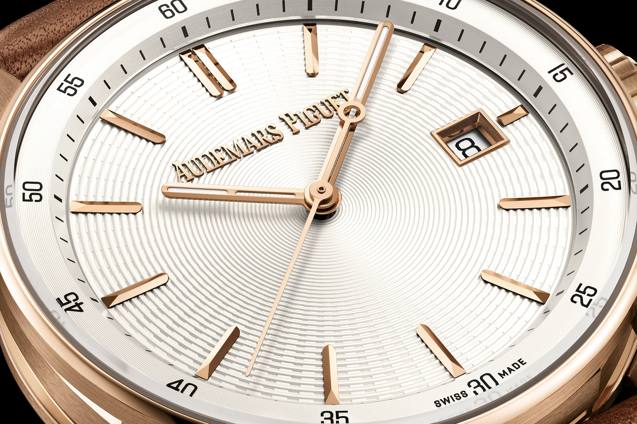 Next to this Code 11.59 by Audemars Piguet, the two new 38-millimetre versions almost fade into the background: both are in rose gold, one with a black dial (reference 77410OR.OO.A127CR.01), the other with a silver dial (reference 77410OR.OO.A402VE.01). This is unfair, of course, because as classic three-hand watches with a date function, these two timepieces are in a completely different segment, and in this segment they are quite unique with the aesthetics typical of the Code 11.59 by Audemars Piguet. After all, their competitors are usually either much more classic in design or completely futuristic. These two, however, offer a pleasant blend of both worlds, resulting in an appealing ‘fusion concept’ for a highly competitive category.