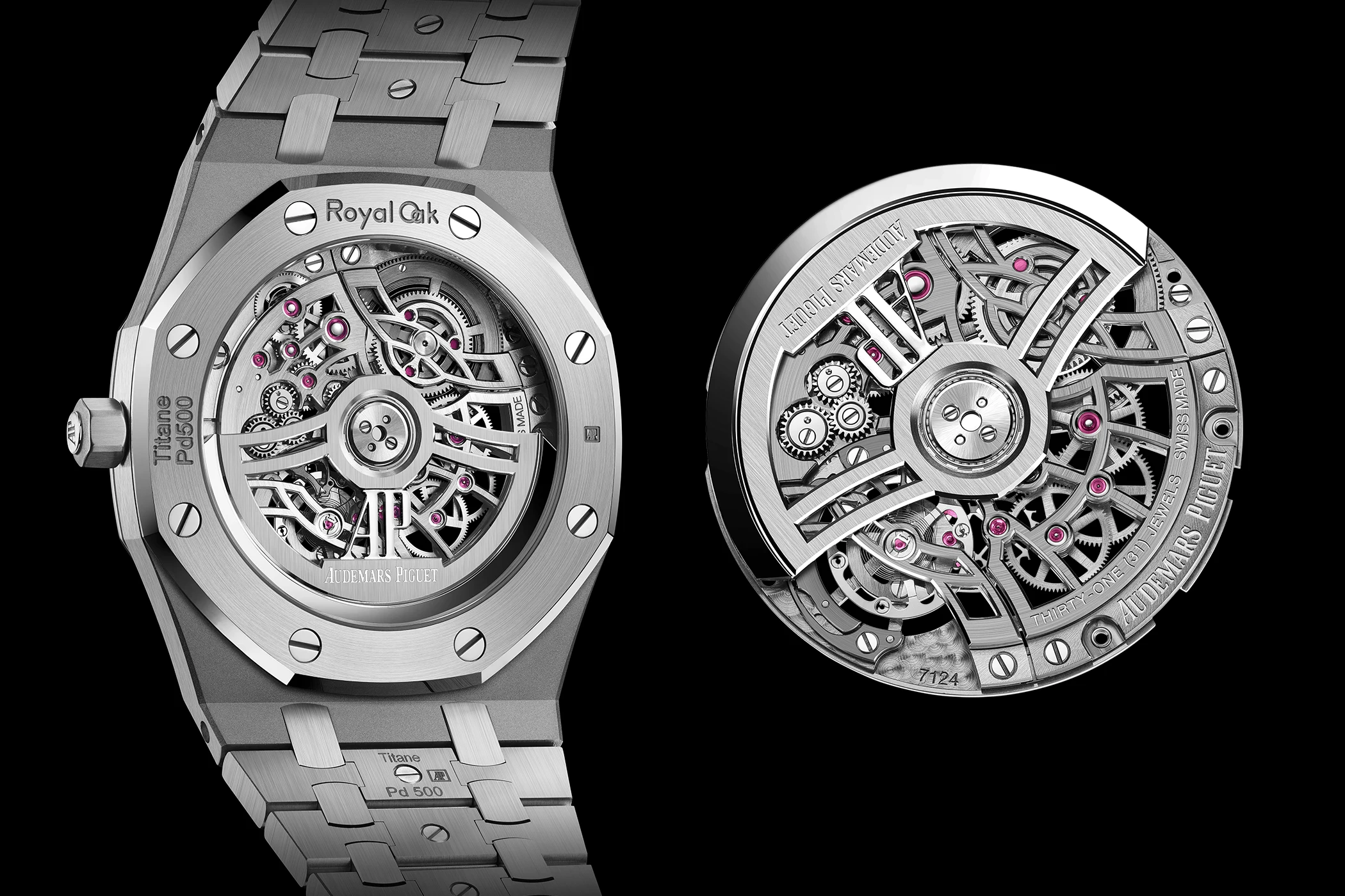 Technically, nothing has changed in the titanium model compared to the familiar white gold version; both are powered by the calibre 7124. Nevertheless, even those who already own a skeletonised Royal Oak will check their bank balance when putting on this titanium version, or consider where they can cut back on other expenses to afford this exceptional Royal Oak. This is because titanium gives the watch a pleasantly understated grey sheen, while the lightness of the metal not only increases wearing comfort but is ultimately the most suitable material for a skeletonised watch: reduced to the maximum extent possible, every extra gram counts, and less is definitely more in this case.
