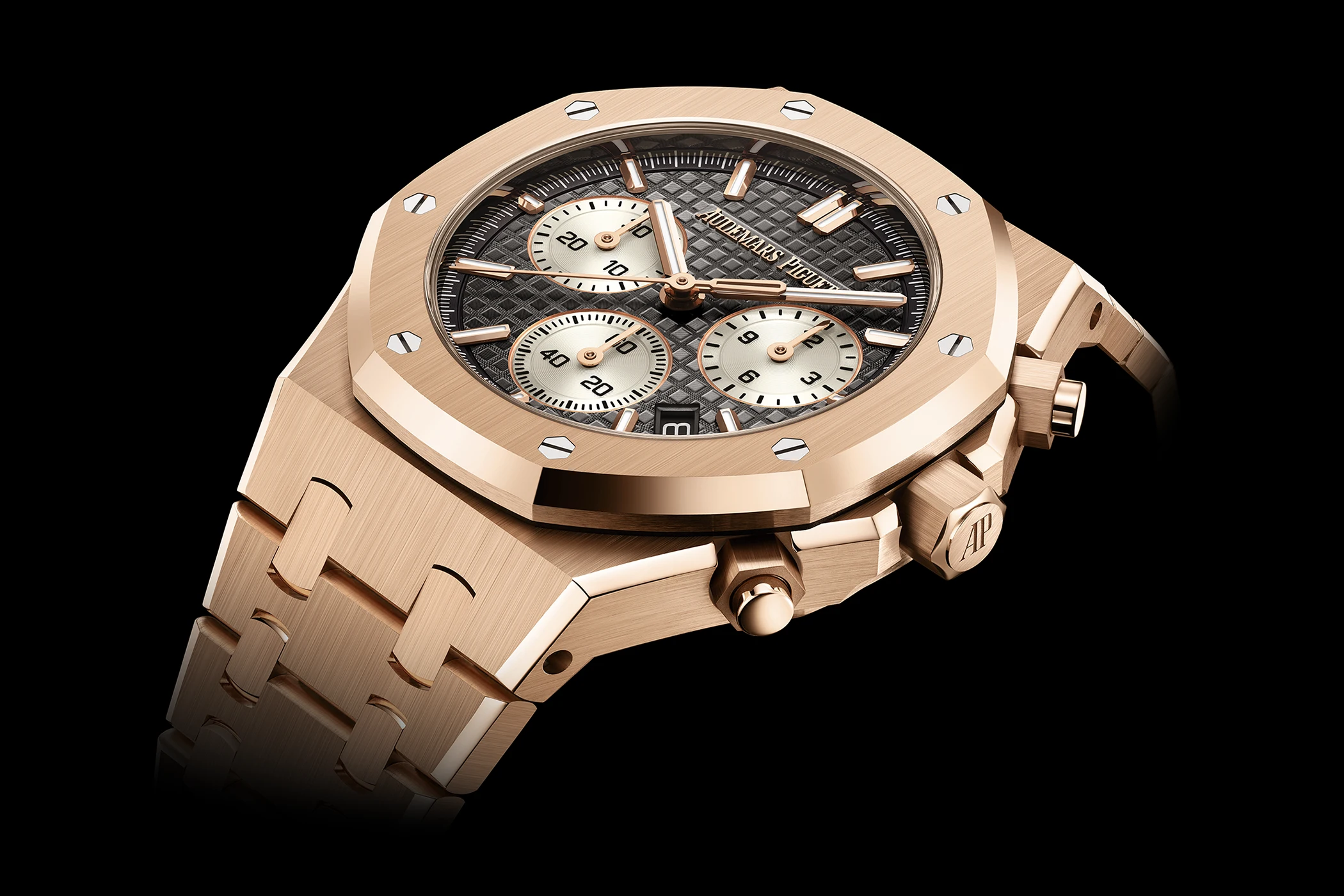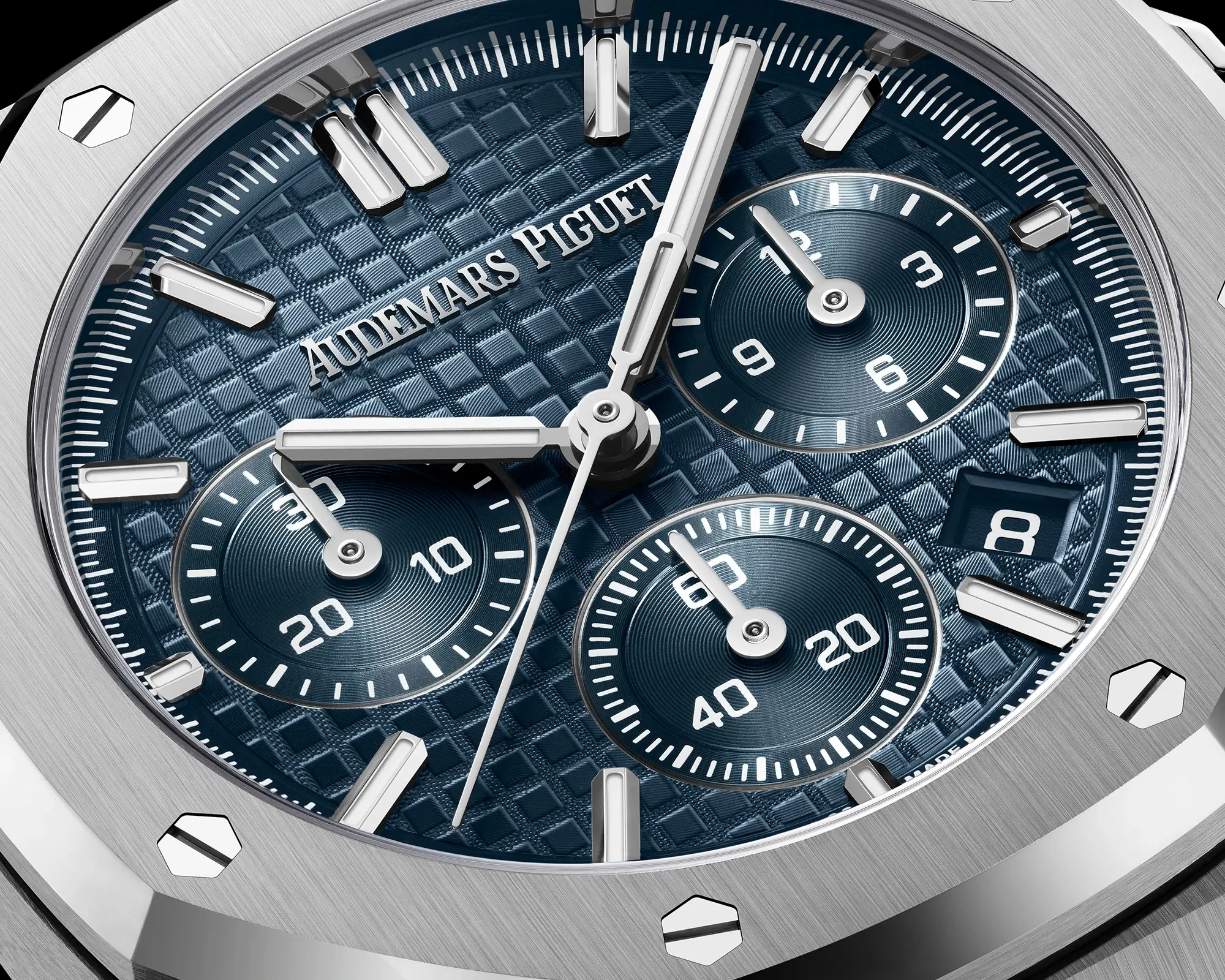 Watch enthusiasts with slimmer wrists know that the 41-millimetre versions of the Royal Oak feel significantly larger than other watches with this diameter due to the lugs. At the same time – and perhaps because of this? – the 39-millimetre ‘Jumbo’ is extremely sought-after and difficult to purchase. From this perspective, the 38-millimetre chronograph has a significance that should not be underestimated: it combines a compact unisex size with the popular complication of the chronograph. And it is precisely this model that has now been fundamentally redesigned and equipped with the new automatic calibre 6401. It replaces the calibre 2385, which was introduced in 1997. It boasts a 55-hour power reserve, which is an improvement of 15 hours, and features a date display that jumps immediately at midnight. In future, a sapphire crystal on the back will also allow a view of the movement and its finishing.