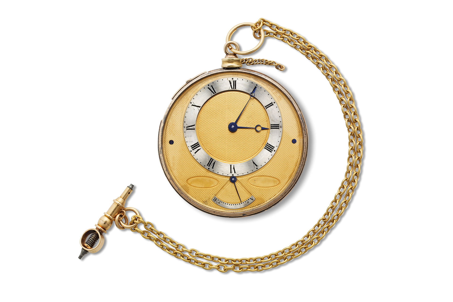 Front view of the Breguet Nr. 1693 pocket watch from Polish politician Stanislas Potocki from the watch museum in Vienna (middle)