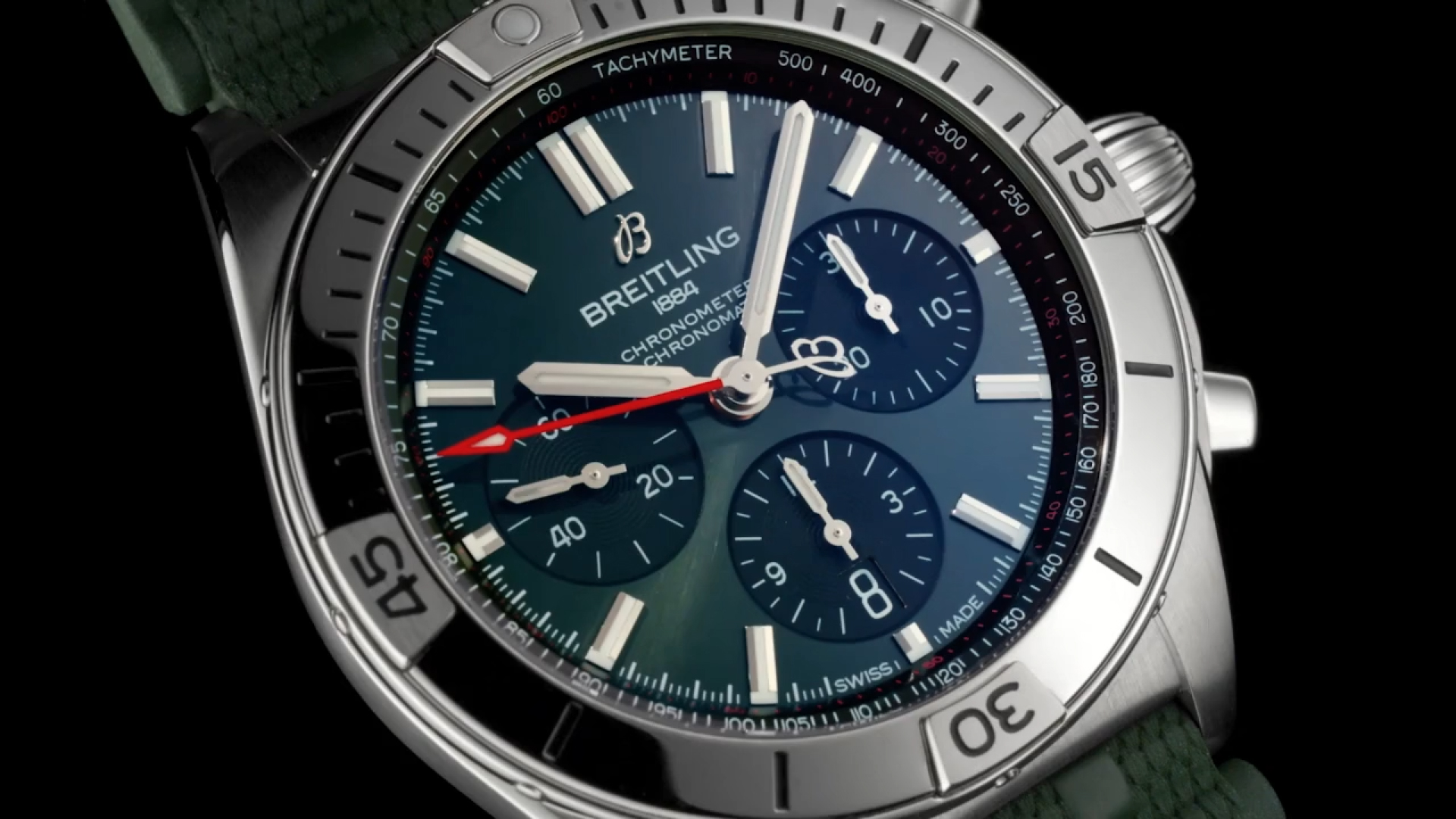 Upon its relaunch, the new-generation Chronomat came in a variety of metal and dial options, though initially in a single case size of 42 mm. It was offered with dials in modern interpretations of silver, copper, or blue, each with contrasting black subdials. Another option included a black dial with silver subdials. To celebrate Breitling’s long-standing partnership with luxury carmaker Bentley, the Chronomat B01 42 Bentley was released with a green dial and black counters.