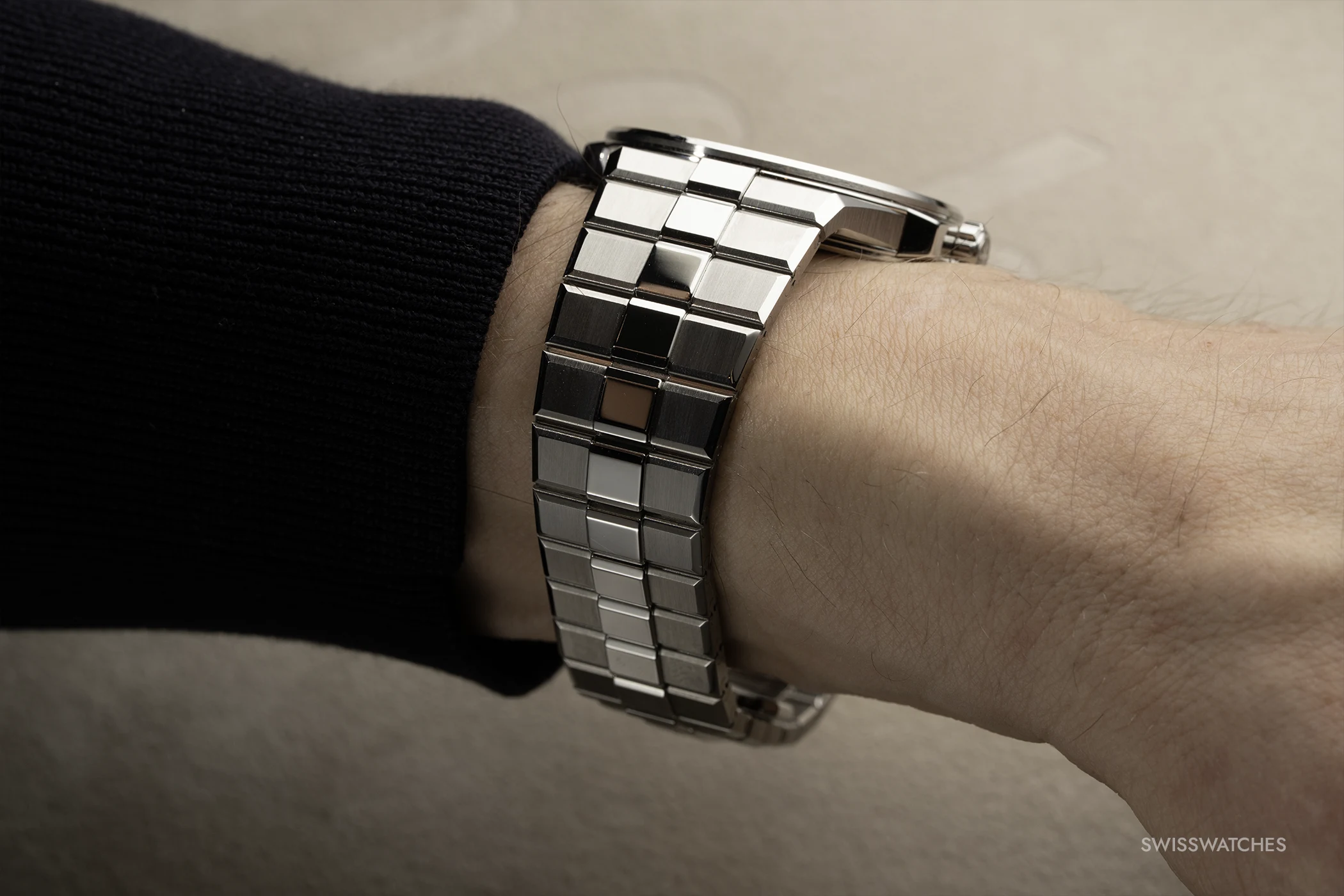 In addition, the new strap features a comfort adjustment system integrated into the triple-fold clasp. By simply pulling or pushing the first strap link, the strap can be adjusted by up to five millimetres to accommodate changes in temperature, activity levels or wrist movements.