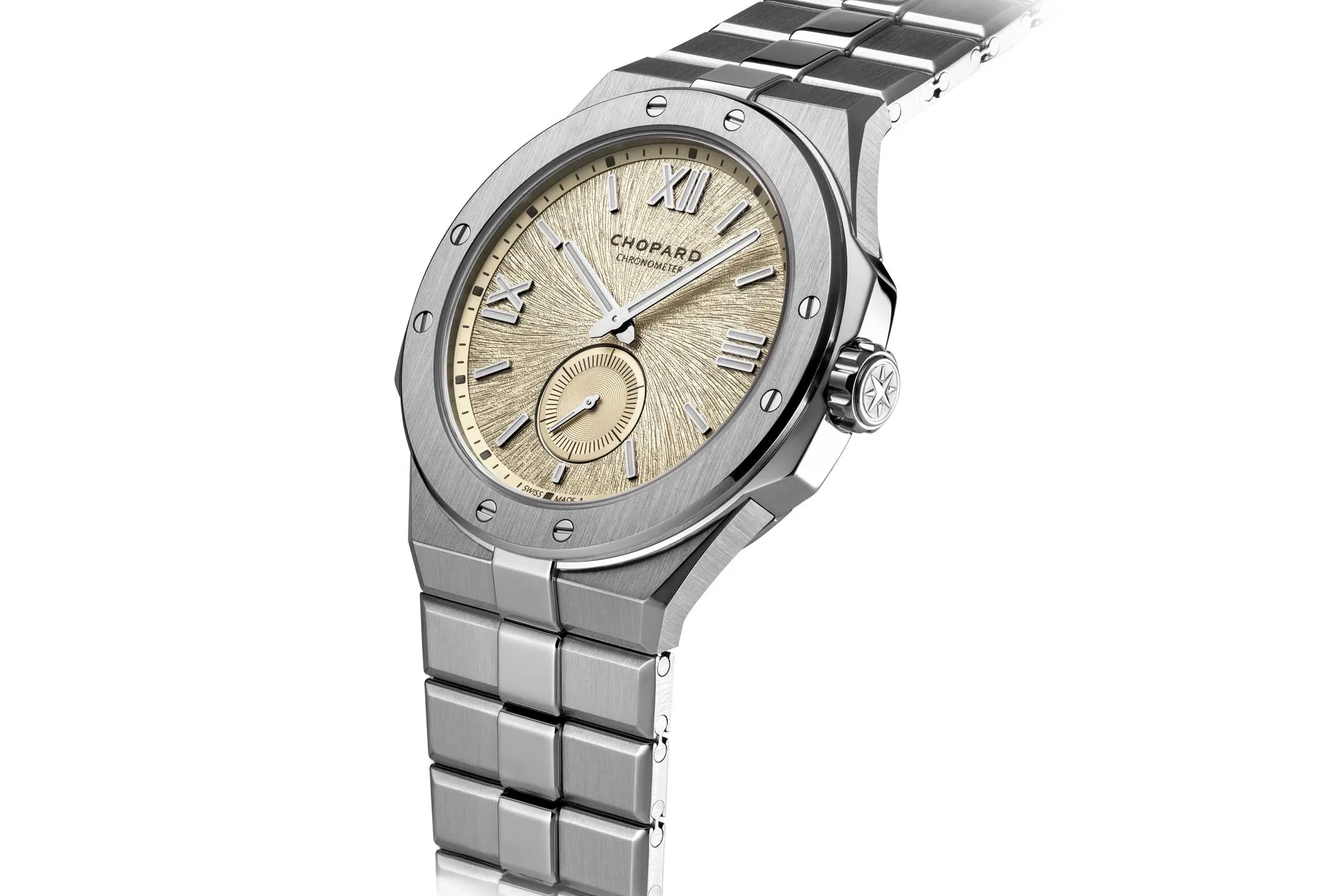 Since 2018, Chopard has been using gold that meets international best-practice standards for environmental and social responsibility. This material is complemented by Lucent Steel, a stainless steel alloy containing at least 80 per cent recycled content. It was introduced in 2019 alongside the Alpine Eagle collection.