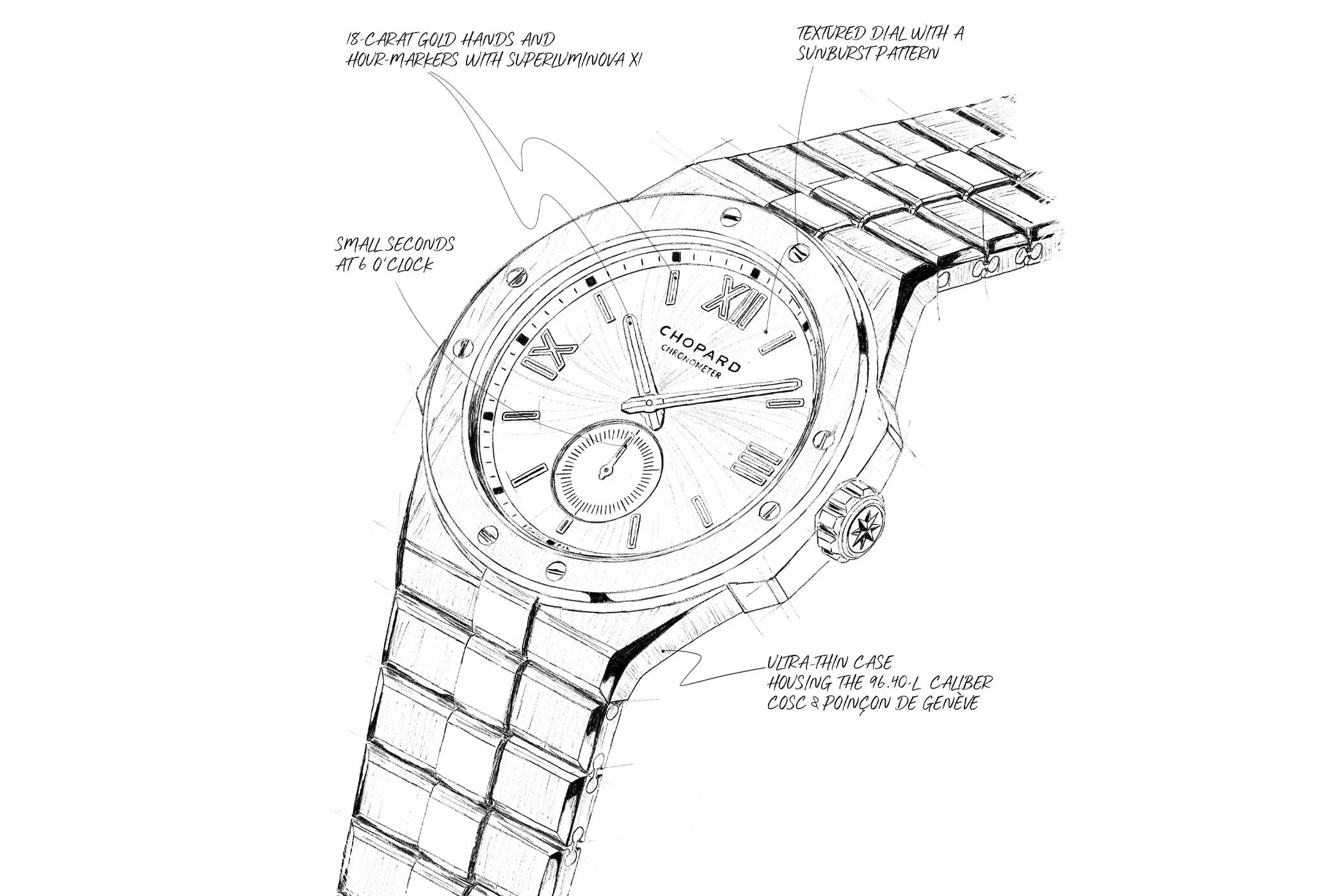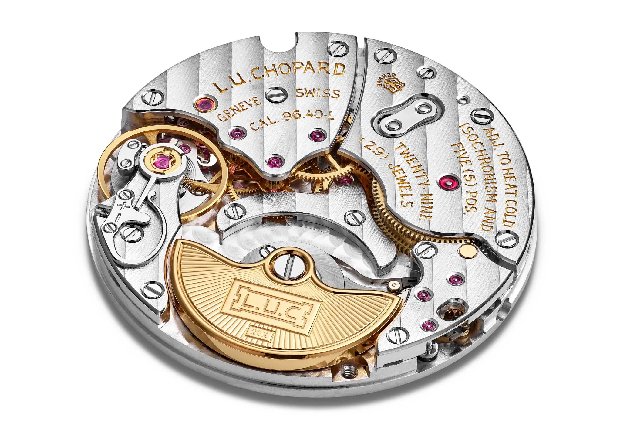 The L.U.C 96.40-L calibre is based on the L.U.C 96.01-L, introduced in 1996, which was the first movement developed at the Chopard Manufacture in Fleurier. In its current, modernised version, it comprises 176 components whilst retaining its remarkably slim dimensions of just 27.4 millimetres in diameter and a height of only 3.3 millimetres.