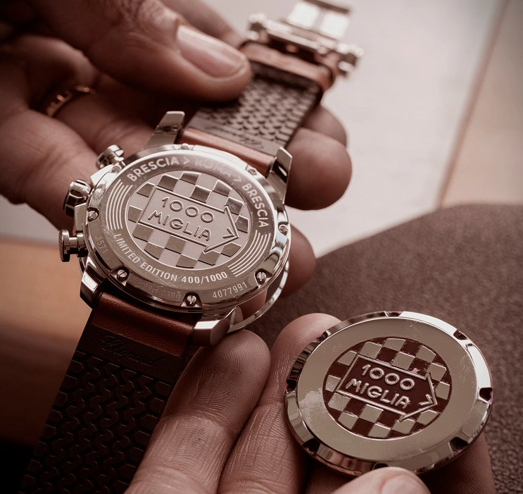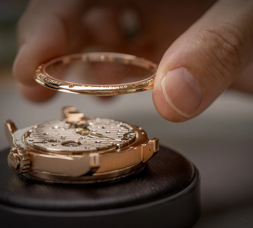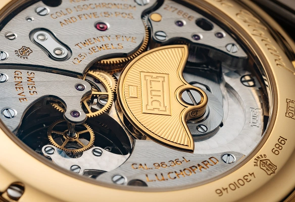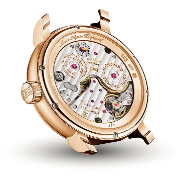the often complex movement. To qualify, the Chopard timepiece must be 100 percent Swiss-made, achieve COSC chronometer status, pass the Fleuritest simulator (a 24-hour real-wear accuracy test), endure the Chronofiable protocol (an accelerated aging cycle of shocks, magnetism, and temperature changes), and additionally meet the highest standards of artisanal finishing. Chopard reserves this revered label for select models in its L.U.C collection, underscoring its dedication to both technical performance and haute horlogerie craftsmanship.