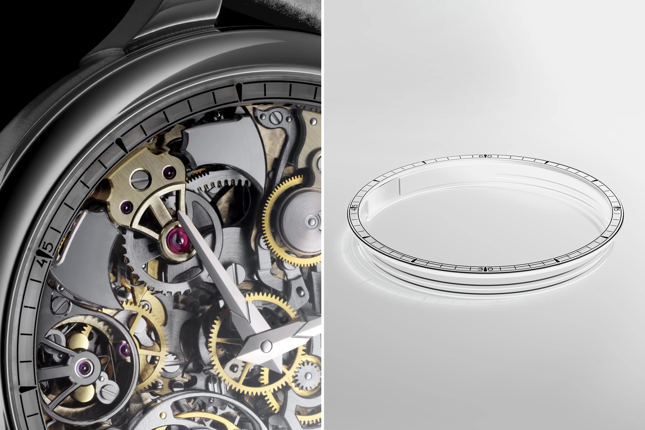 The striking mechanism operates with notable speed: whether activated manually as a minute repeater or automatically via the grande/petite sonnerie, 34 components are brought into position within 0.3 seconds. Twenty-two manually adjusted springs govern the precise sequence of actions before the hammers strike the sapphire gongs. Additional patented features prevent incorrect operation and block activation when the remaining power reserve is too low. Thus, they improve the energy efficiency of the striking mechanism.
