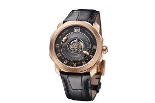 The Chopard L.U.C Strike One comes on a hand-stitched gray alligator leather strap with white gold pin buckle. The watch is a limited edition of 25 pieces. The price is 64,000 CHF.