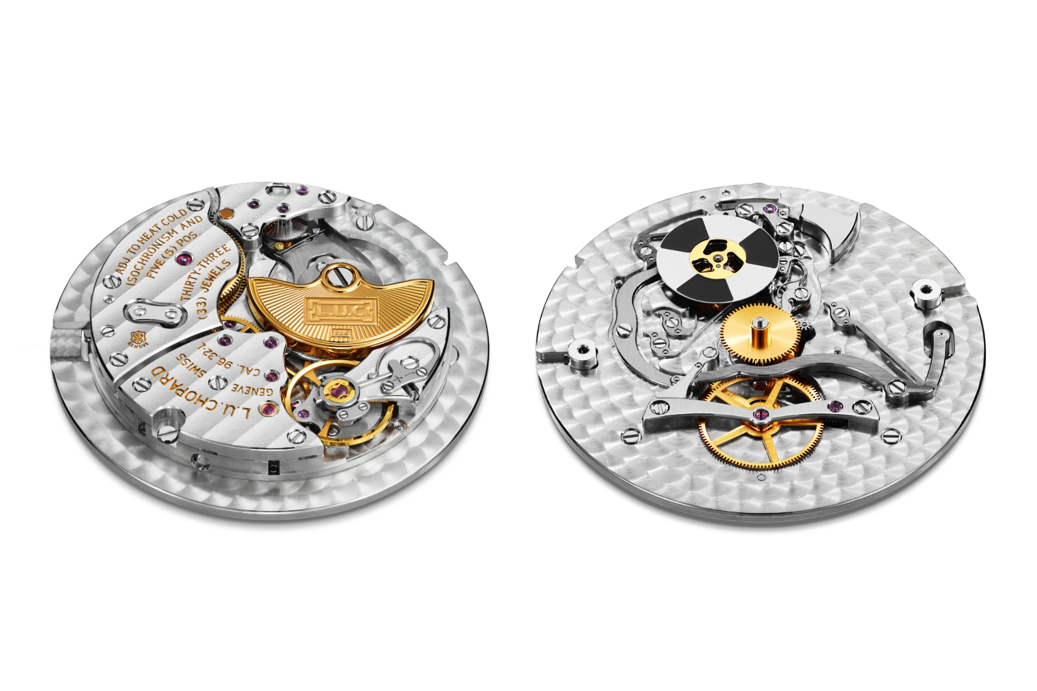 The movement goes by the name of L.U.C 96.32-L. It consists of 275 components and has a height of 5.6 mm. Two barrels ensure a power reserve of 65 hours, which is available even when the striking mechanism is in action. A micro-rotor made of 22-carat yellow gold handles the winding. The sonnerie consists of a single hammer and a sapphire crystal gong. The latter is connected to the cover glass and is cut as one piece from a sapphire block. Due to the construction without soldering, screwing or gluing, the watch produces a constant and clear sound. The movement bears both the COSC certificate and the Geneva Seal.