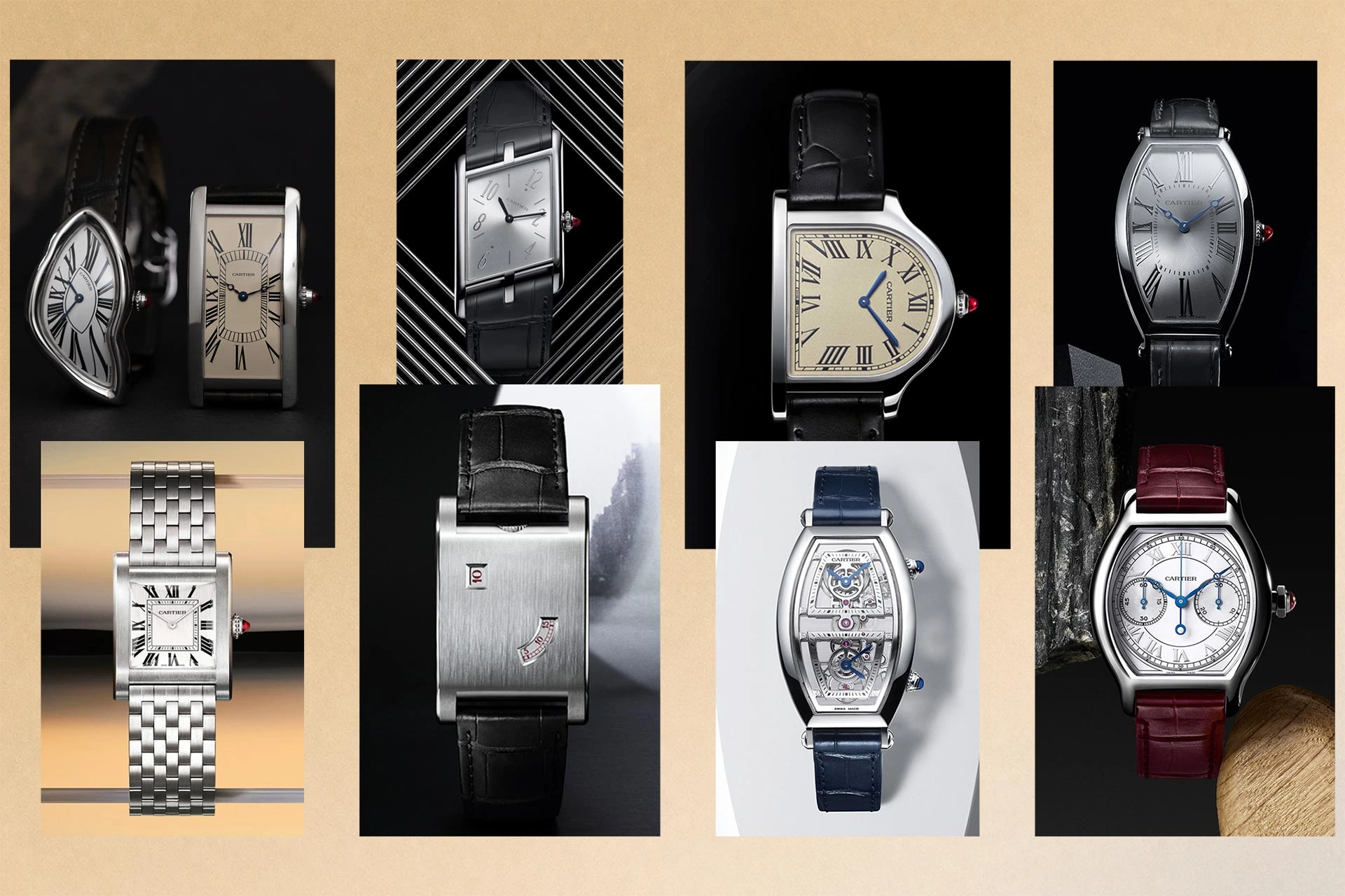 Im Rahmen der zehnten Privé-Kollektion stellt Cartier ein Trio aus Gelbgold-Uhren der beliebten Tank Normale, der historischen Tank Cintrée und der eigenwillige Cloche vor.