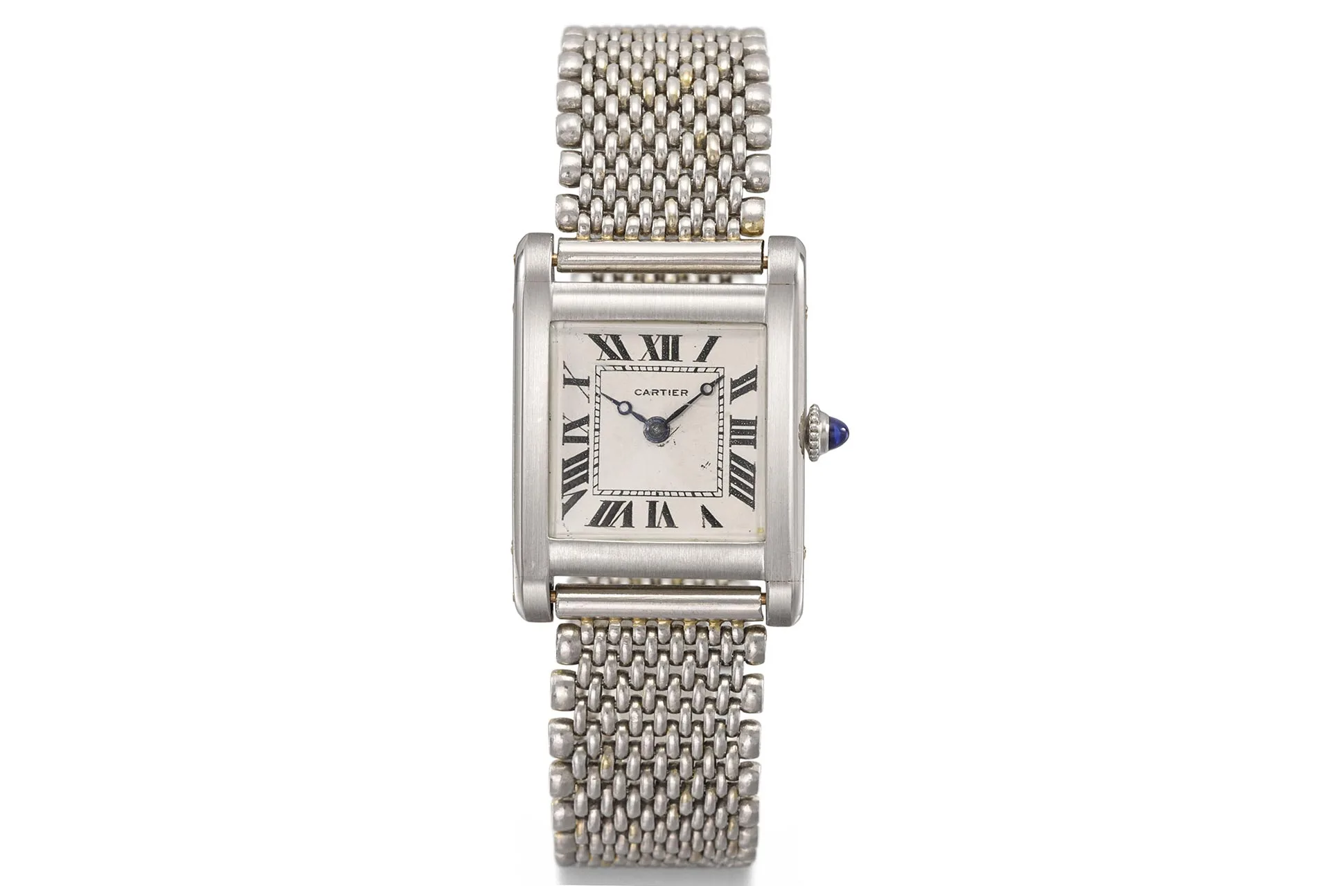 In den 1930er Jahren fertigten die Pariser Werkstätten von Cartier die „Tank“ in geringen Stückzahlen an, meist aus Edelmetallen und oft als Einzelanfertigung auf Bestellung, wobei jedes Stück von Hand vollendet wurde. Platin-Exemplare aus dieser Epoche waren besonders rar und entstanden häufig durch Sonderaufträge; jene Stücke, die heute noch über ihr originales, zeitgenössisches Armband verfügen, werden von Sammlern ganz besonders geschätzt. Tatsächlich kamen verschiedene Armband-Varianten zum Einsatz: So wurde kürzlich bei Sotheby’s ein Modell aus den 1930er Jahren für 112.000 Dollar versteigert – ein Preis, der unter anderem auf das Platingehäuse und das „Brick-Link“-Armband (Backstein-Gliederung) zurückzuführen war. Eine andere „Tank Normale“ aus denselben Jahren, ebenfalls in Platin, erzielte 99.000 Dollar, was dem begehrten „Grain de Riz“-Armband (Reiskorn-Design) und der Schließe aus Roségold zu verdanken war. Solche erhaltenen Stücke genießen höchstes Ansehen – nicht nur wegen ihrer Seltenheit, sondern auch, weil sie den Geist von Cartiers Design aus der Zwischenkriegszeit so lebendig widerspiegeln.