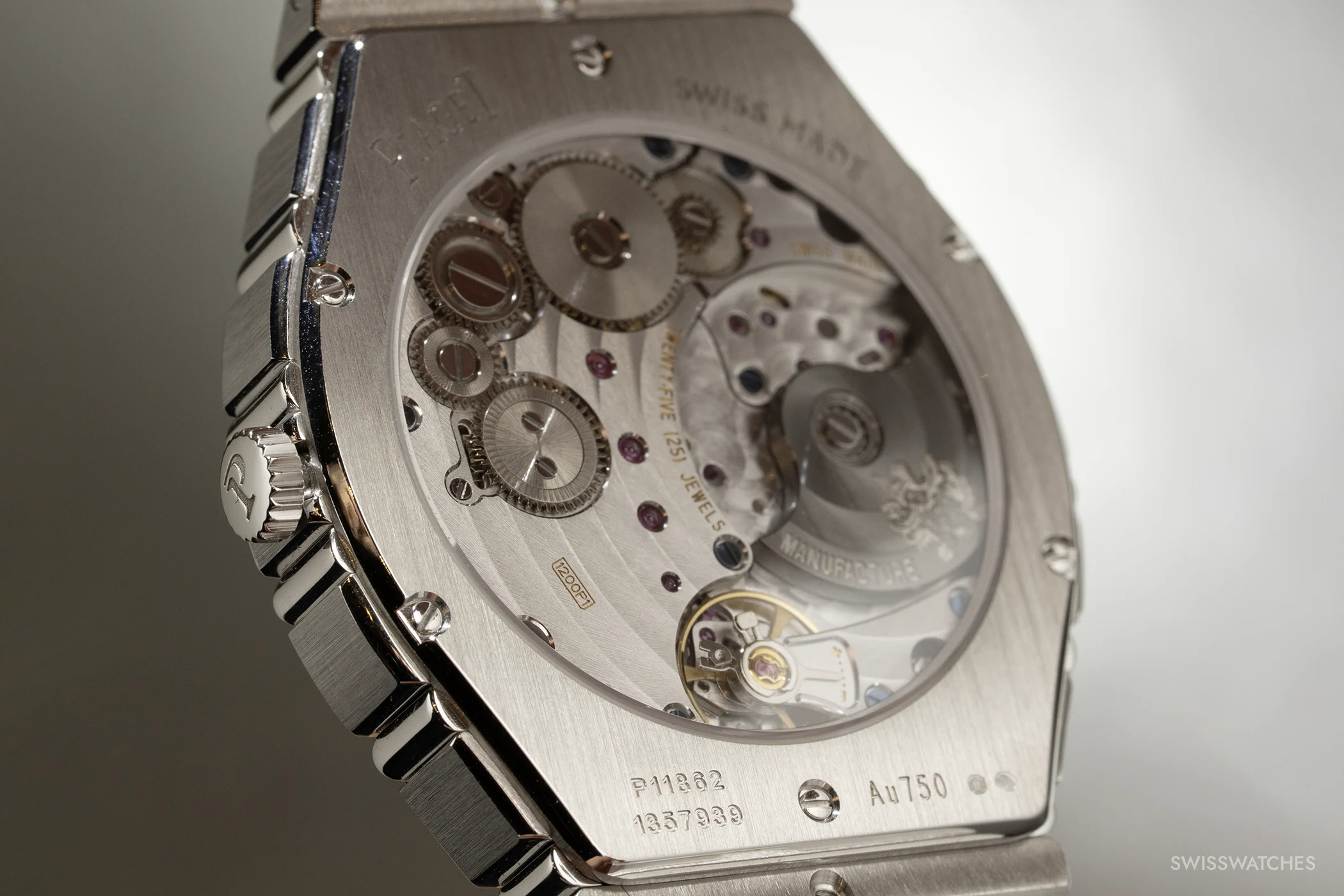Im Inneren der Polo 79 arbeitet das Manufakturkaliber 1200P. Während die historischen Modelle noch mit Quarzwerken ausgestattet waren, kommt heute ein ultraflaches mechanisches Automatikwerk zum Einsatz. Dieses Kaliber wurde bereits in der Altiplano verwendet und steht exemplarisch für Piagets Expertise im Bereich extraflacher Uhrwerke.
