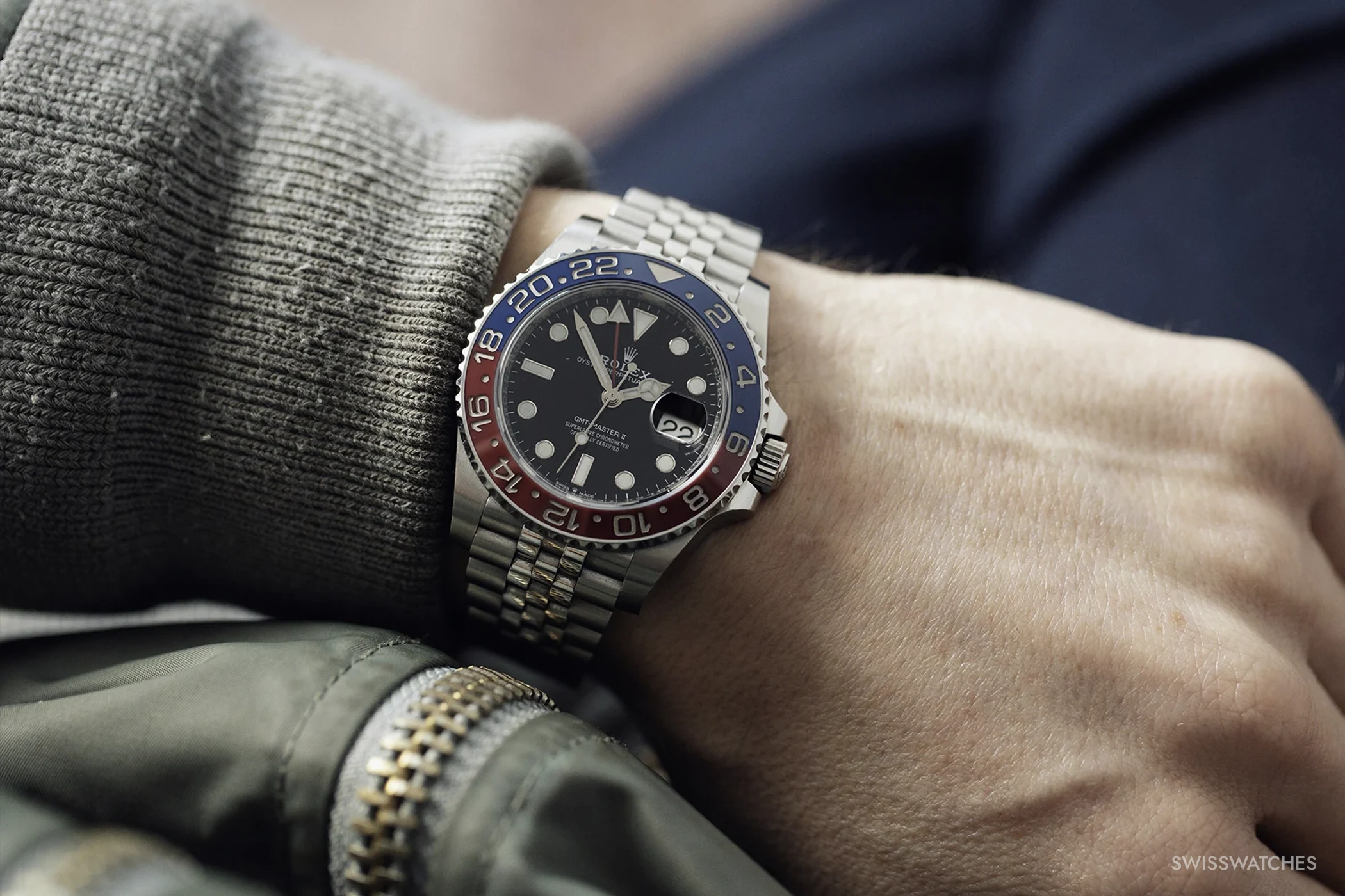 Bei den modernen Referenzen verschieben sich die Kriterien. Hier geht es weniger um historische Substanz als um Vollständigkeit, Erhaltungszustand und die Frage, welche Ausführung man eigentlich möchte. Bei der 126710BLRO spielt etwa durchaus eine Rolle, ob man das Jubilee-Band oder die Oyster-Version bevorzugt; Rolex führt beide Varianten offiziell. Bei der Weißgold-Referenz 126719BLRO stellt sich zusätzlich die Frage nach dem Zifferblatt: nachtblau oder Meteorit. Technisch unterscheiden sich beide Ausführungen nur im Kaliber je nach Baujahr; in ihrer funktionalen Wirkung unterscheiden sie sich nicht.