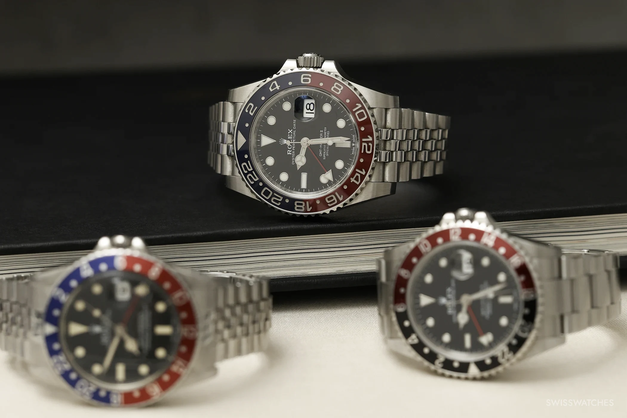 Dass ausgerechnet die blau-rote Version später zum bekanntesten Gesicht der gesamten Linie wurde, ist deshalb kein Zufall. An ihr lässt sich die Entwicklung des Modells besonders gut erzählen – von der frühen GMT-Master der fünfziger Jahre über die klassischen Aluminium-Referenzen bis hin zu den heutigen Modellen mit Cerachrom-Lünetteneinlage.