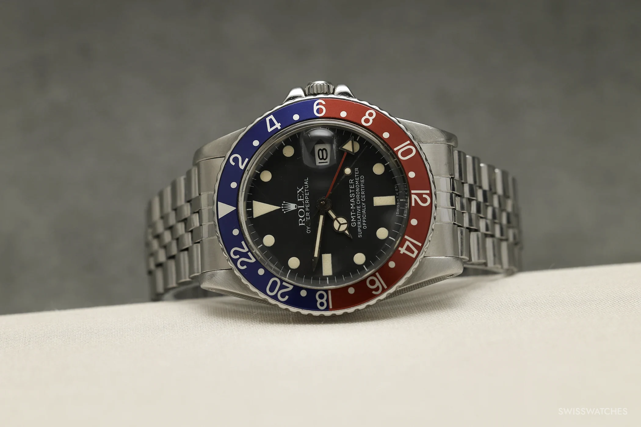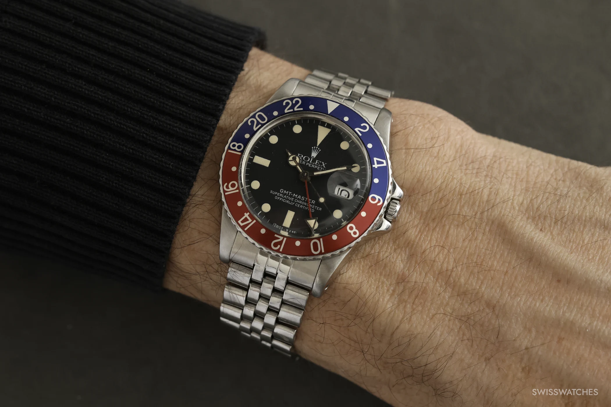 Dazu kommt, dass Alterung oder Patina bei der Pepsi nie nur als Mangel angesehen wird. Verblasste Lünetten, leichte Farbverschiebungen oder eine überzeugende Patina können den Reiz einer Uhr deutlich steigern – vorausgesetzt, sie wirken plausibel und passend zum übrigen Zustand aller Bestandteile der Uhr. Das schlägt sich vor allem am Ende des Tages immer erheblich im Preis nieder und lässt sich bei gut dokumentierten Auktionsexemplaren immer wieder beobachten.