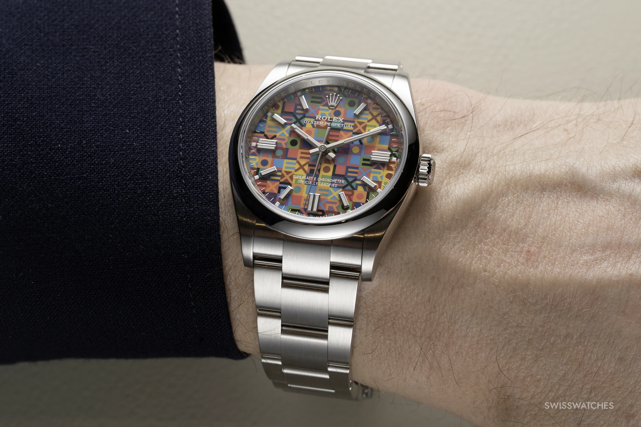 Am deutlichsten zeigt sich das diesjährige Narrativ innerhalb der Oyster Perpetual Kollektion. Rolex macht sie 2026 explizit zum Symbol des 100-jährigen Oyster-Jubiläums und nutzt die Linie, um mehrere Facetten der eigenen Geschichte neu zu interpretieren. Dabei geht es nicht nur um eine neue Farbe oder ein einzelnes Zifferblatt, sondern um eine ganze Reihe ungewöhnlicher Ausführungen.