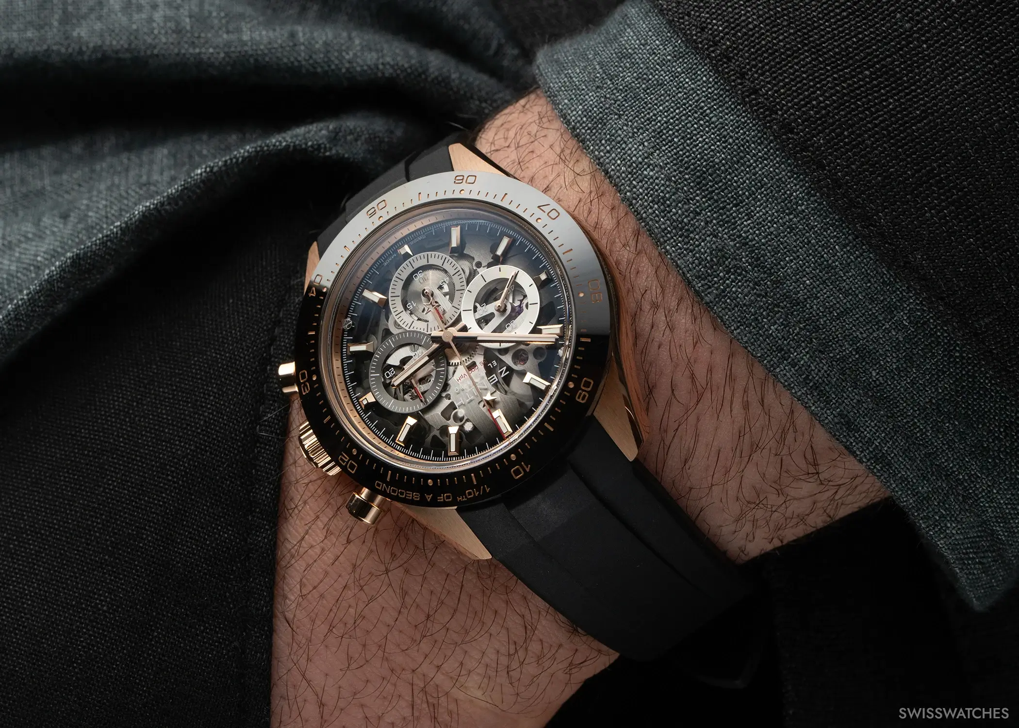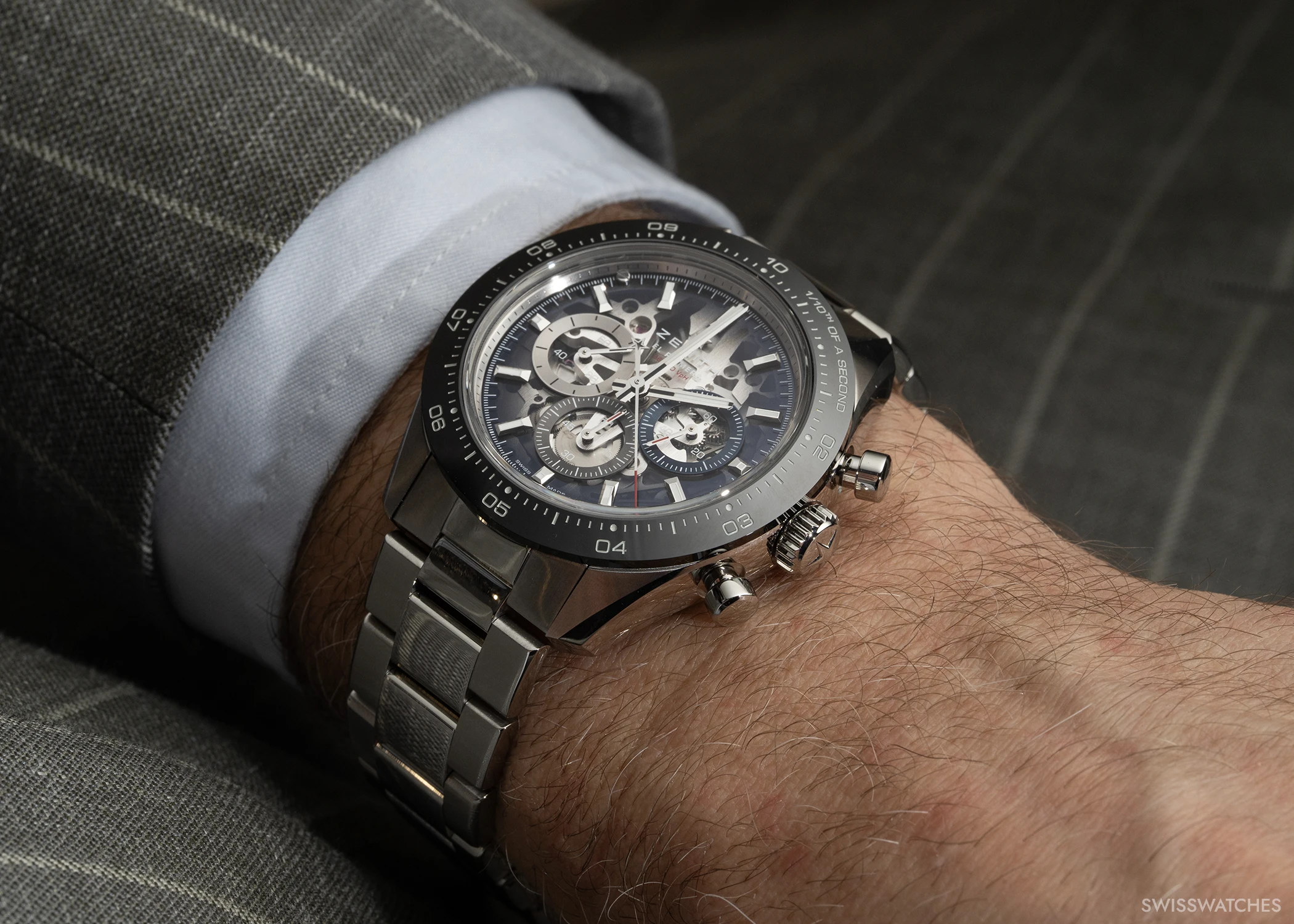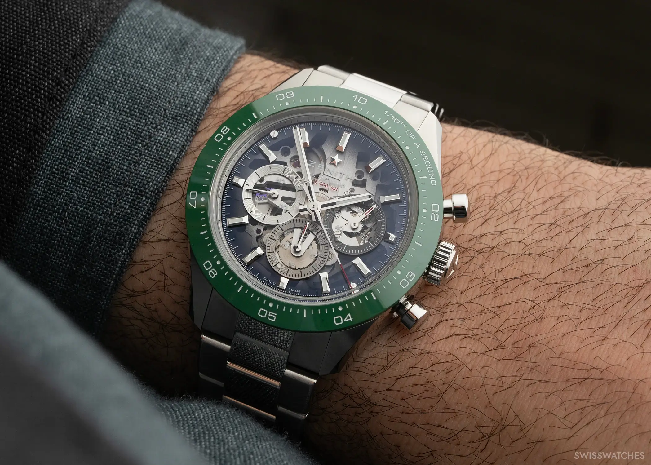 Die neuen Chronomaster-Sport Skeleton-Modelle sind mit einer skelettierten Version des Schnellschwingers El Primero 3600 ausgestattet. Die hohe Frequenz von fünf Hertz (36.000 A/h) ermöglicht die präzise Messung und Anzeige von Zehntelsekunden. Das bedeutet, dass der zentrale Chronographenzeiger eine volle Umdrehung in zehn Sekunden absolviert – bei herkömmlichen Chronographen erfolgt dies einmal pro Minute.