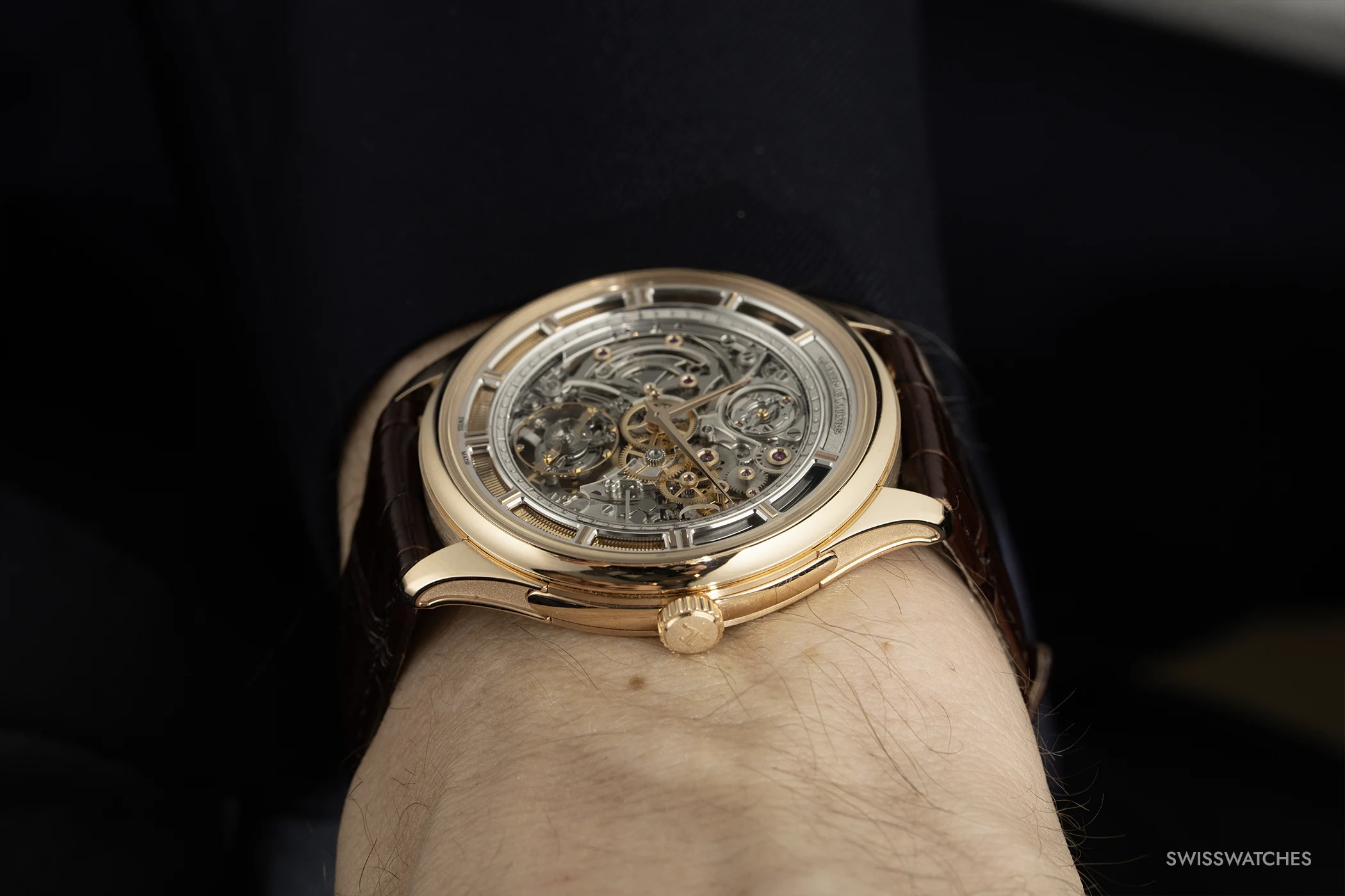 Das Werk wird mit vierzehn unterschiedlichen Finissierungstechniken dekoriert. 60 Komponenten sind von Hand anglierte, 48 Innenwinkel mit großer Präzision ausgearbeitet. Das offene Zifferblatt ist auf einen peripheren Ring aus 18 Karat Weißgold reduziert, wodurch das Werk selbst zum dominierenden Gestaltungselement wird. Das Gehäuse aus 18 Karat Roségold misst 41,4 Millimeter im Durchmesser und 8,25 Millimeter in der Höhe und besitzt ein versenkbares Drückersystem zur Aktivierung der Minutenrepetition. Der Preis liegt bei 765.000 Euro.