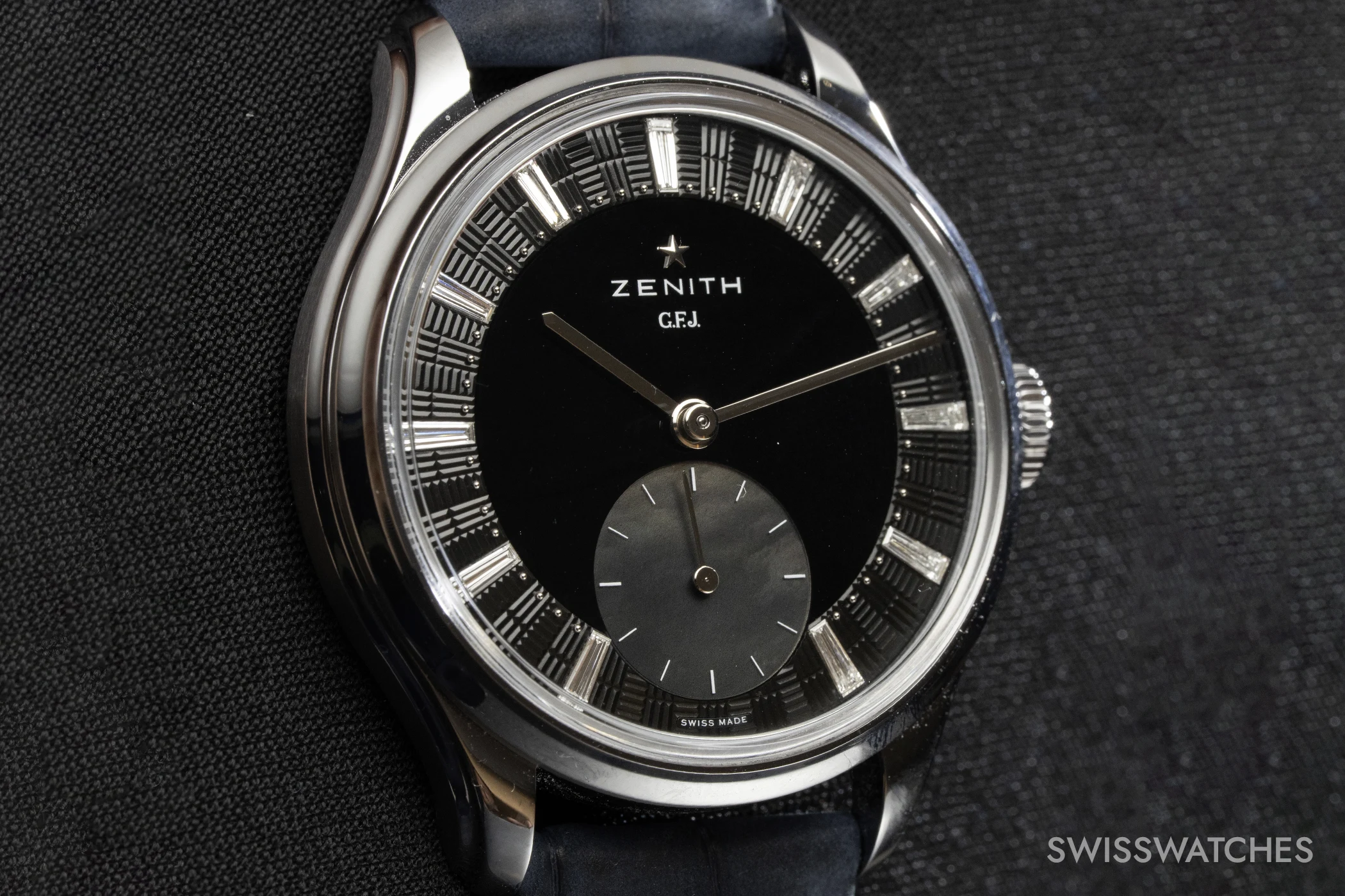 Vielleicht ist das auch der Punkt, an dem sich die neuen G.F.J.-Modelle von herkömmlicheren Neuheiten klar absetzen. Nicht weil sie besonders spektakulär wären, sondern weil Zenith mit diesen Modellen testet, wie viel Zustimmung und Reichweite ihr Kaliber 135 eigentlich hat. Die gelbgoldene Bloodstone-Version zeigt die weichere, klassische Erscheinungsform die die G.F.J annehmen kann. Die Tantal-Ausführung testet, ob dieselbe Konstruktion auch in einer kühleren, sehr technisch-wirkenden Designsprache funktioniert. Beides klappt, gerade weil die Optik beider Uhren nicht versucht, die Hauptidee hinter den Kreationen bzw. das Werk zu übertönen.