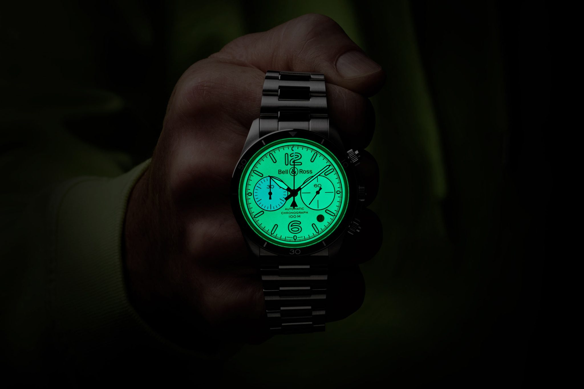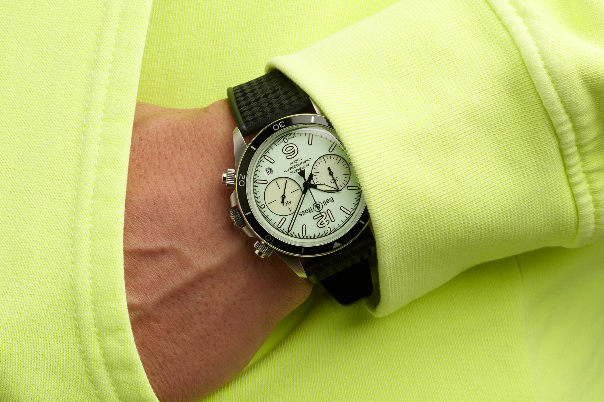Powering the bicompax chrono is the calibre BR-CAL.301. This in-house automatic movement has a 42-hour power reserve and beats at a frequency of 4 Hz. Furthermore, the movement is visible via the sapphire crystal caseback. Last but not least, the model’s tapered lugs attach to a sporty black rubber strap. The BR V2-94 Full Lum is available from May onwards.