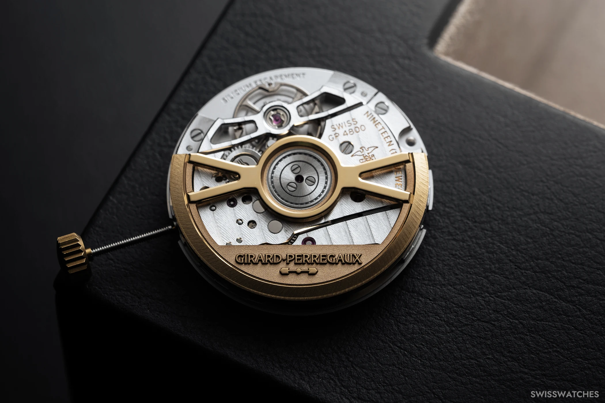 The GP4800 also features a free-sprung balance with four recessed white-gold screws for fine regulation directly on the balance rim. This brings the calibre functionally in line with movements from Rolex, Patek Philippe, and Audemars Piguet. In contrast to conventional index regulation, the hairspring remains unchanged in length – ensuring a stable centre of gravity and improving precision.