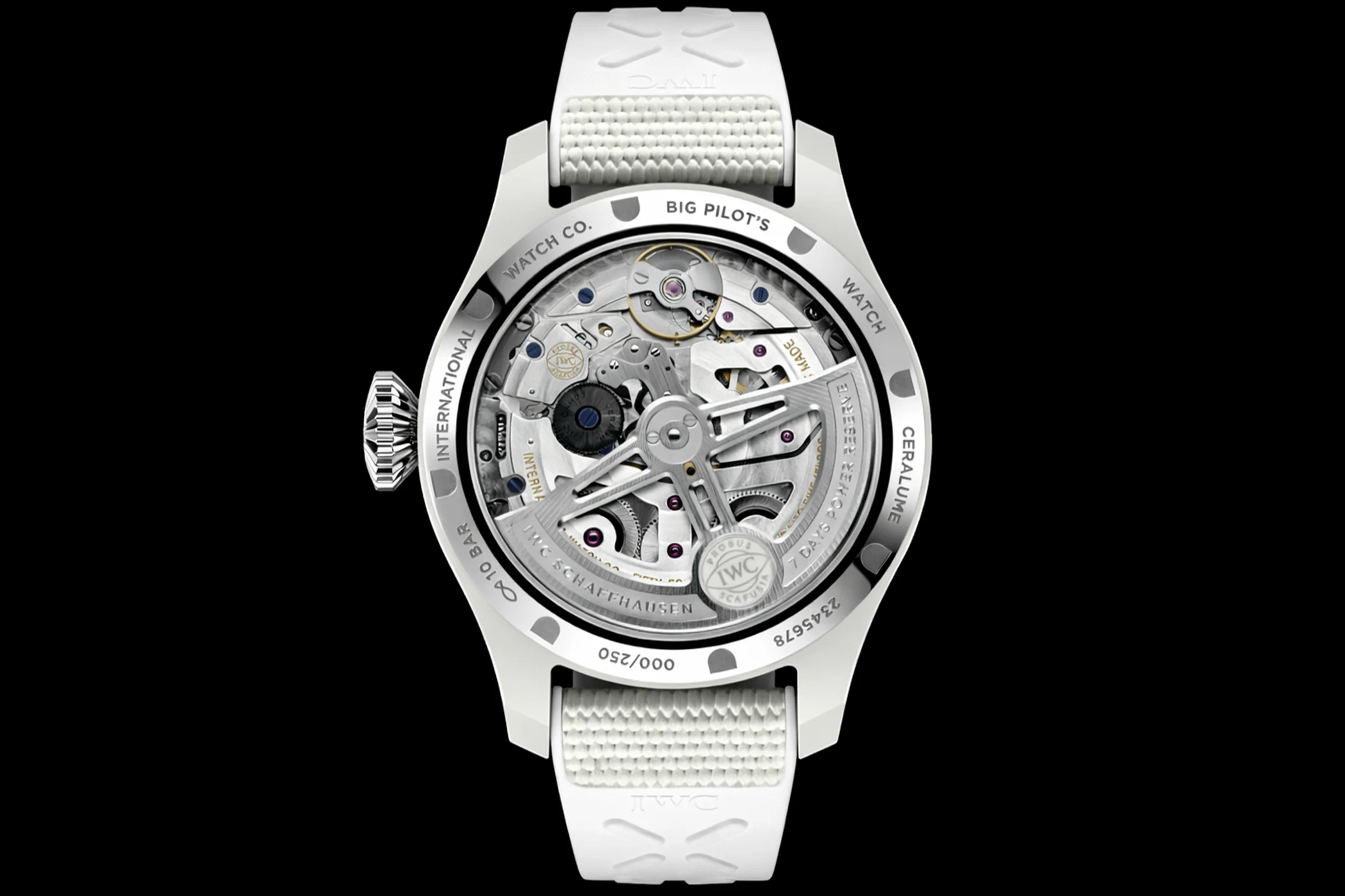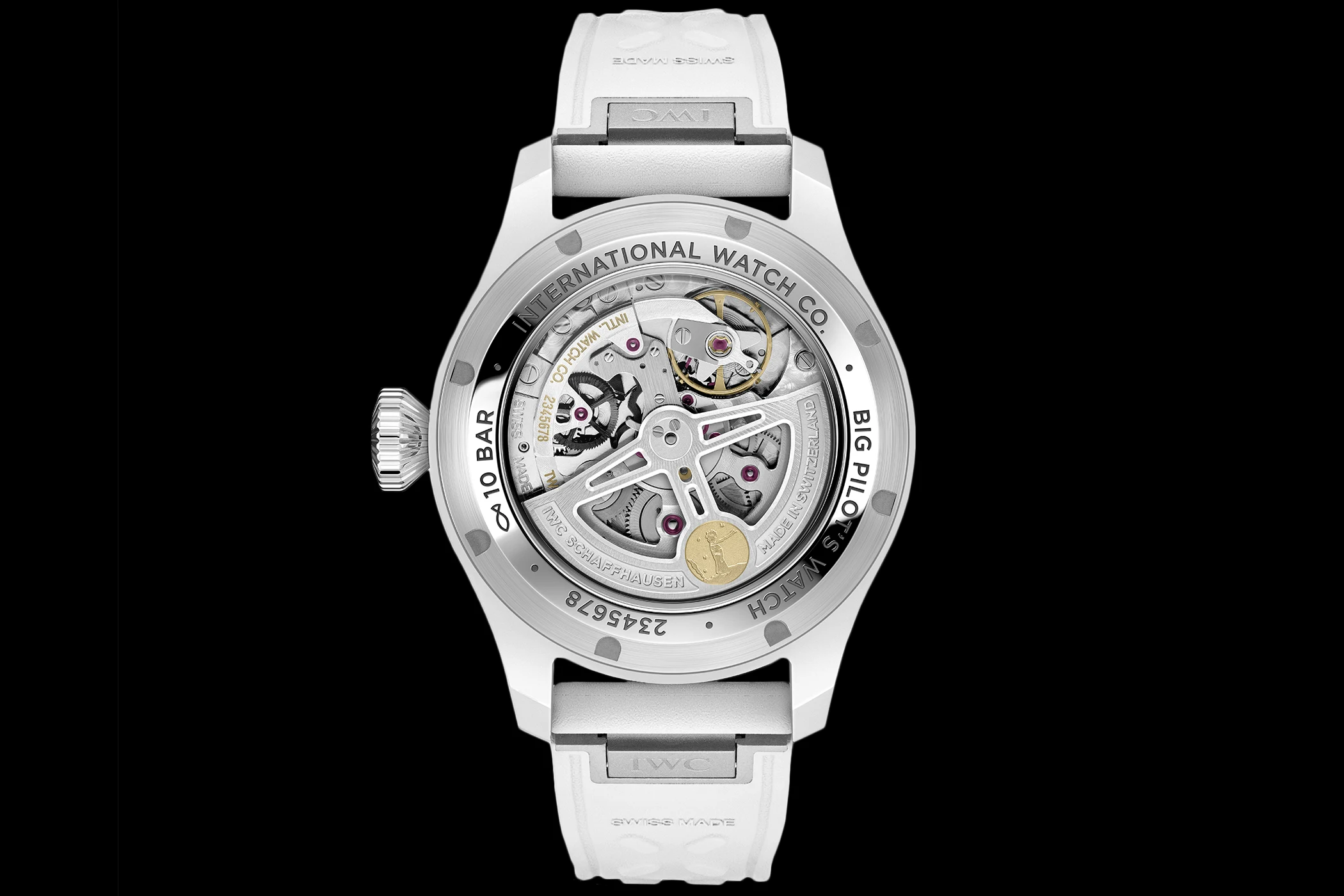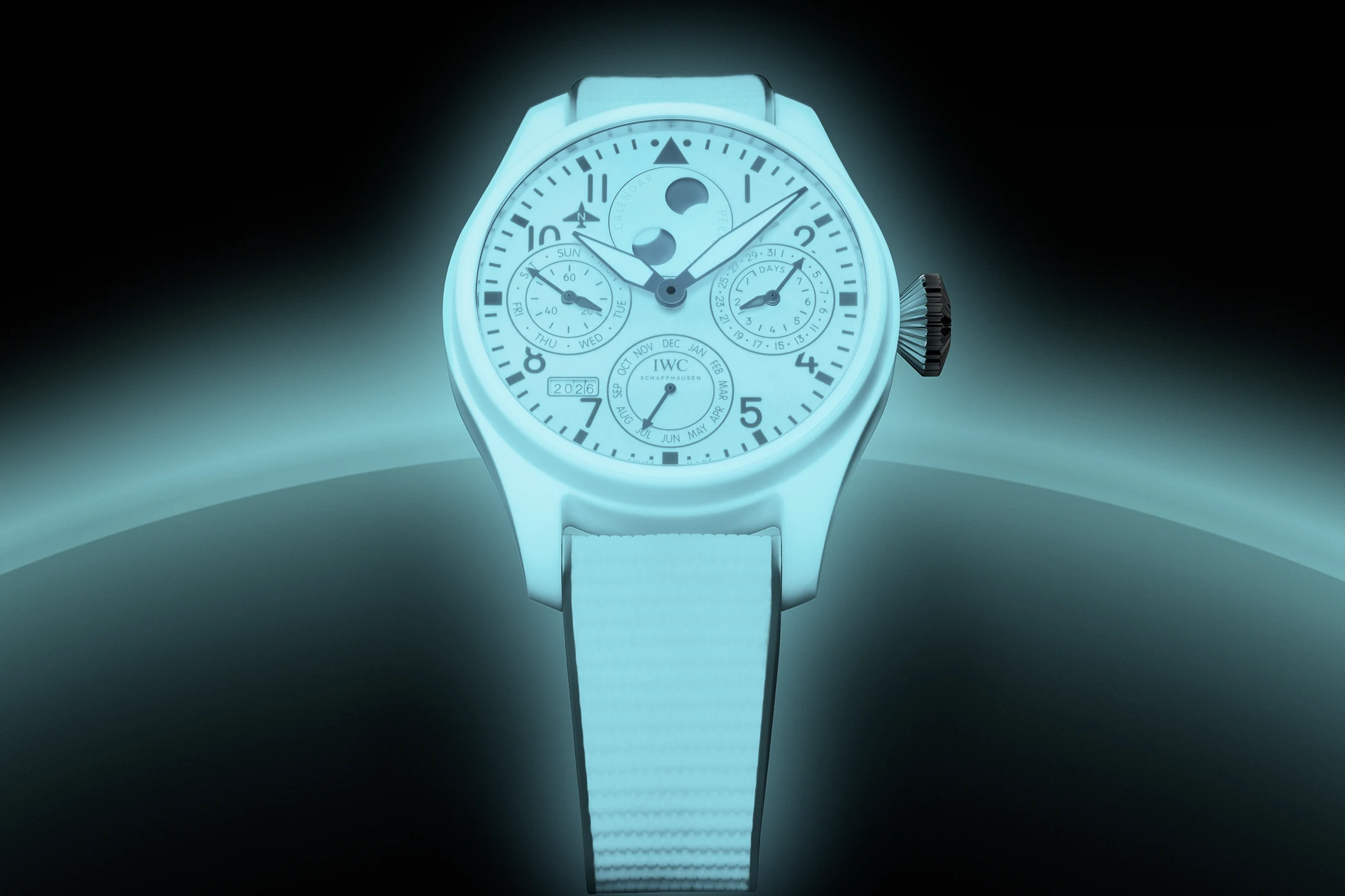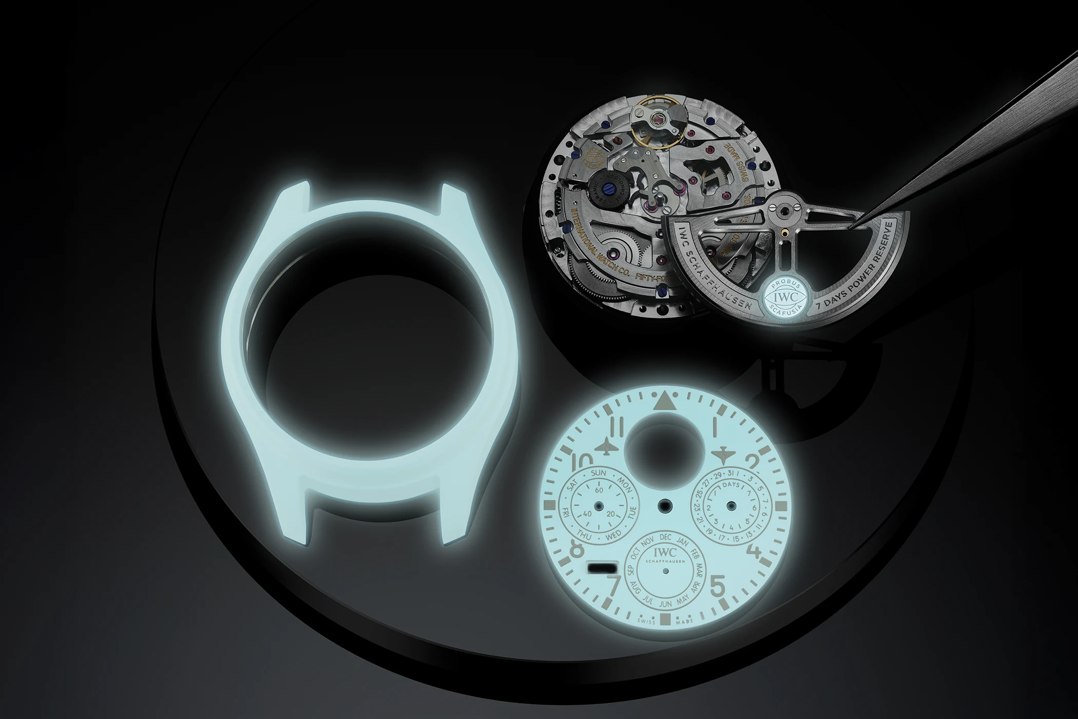 What will provide owners with a first-class party trick in everyday life is the result of intensive material research, with the greatest challenge being to achieve an even glow across the case. In the dark, the snow-white Ceralume now glows like a firefly: case, dial, strap – everything is illuminated. With a diameter of 46.5 millimetres, the watch is hard to miss in any light, day or night, and poses quite a challenge for slender wrists. Fortunately, however, IWC appears to be only at the beginning of a Ceralume story with vast potential for development. Reportedly, smaller cases are also technically feasible, and at least in theory, other ceramic colours could be made to glow, although white naturally produces the most striking effect. Against this backdrop, choosing the Big Pilot for its first major debut seems more than fitting.