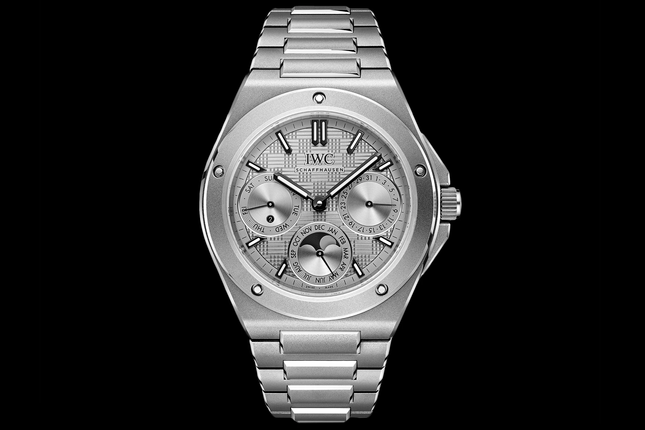 The Ingenieur family, which is being further expanded this year, now features even more dials and materials. A visual highlight is a model crafted from olive-green ceramic with rose-gold accents. It follows on from last year’s black version, and with its gold hour markers, hands, screws and crown, it is anything but a low-key affair (reference IW338902, €23,700). It follows more closely in the footsteps of the rose gold Ingenieur with a flying tourbillon (reference IW345901). However, whilst we have every sympathy for the collection, it must be noted at this point that the latter version is likely to be more of a showcase than a major commercial success. For an IWC, this timepiece is simply unusually loud. The latest version of the Perpetual Calendar Ingenieur is significantly more discreet, and not just in this comparison: crafted from titanium, the 41-millimetre case with its matt grey finish is pleasantly understated – not to mention its comfort on the wrist (reference IW344904, €44,100).