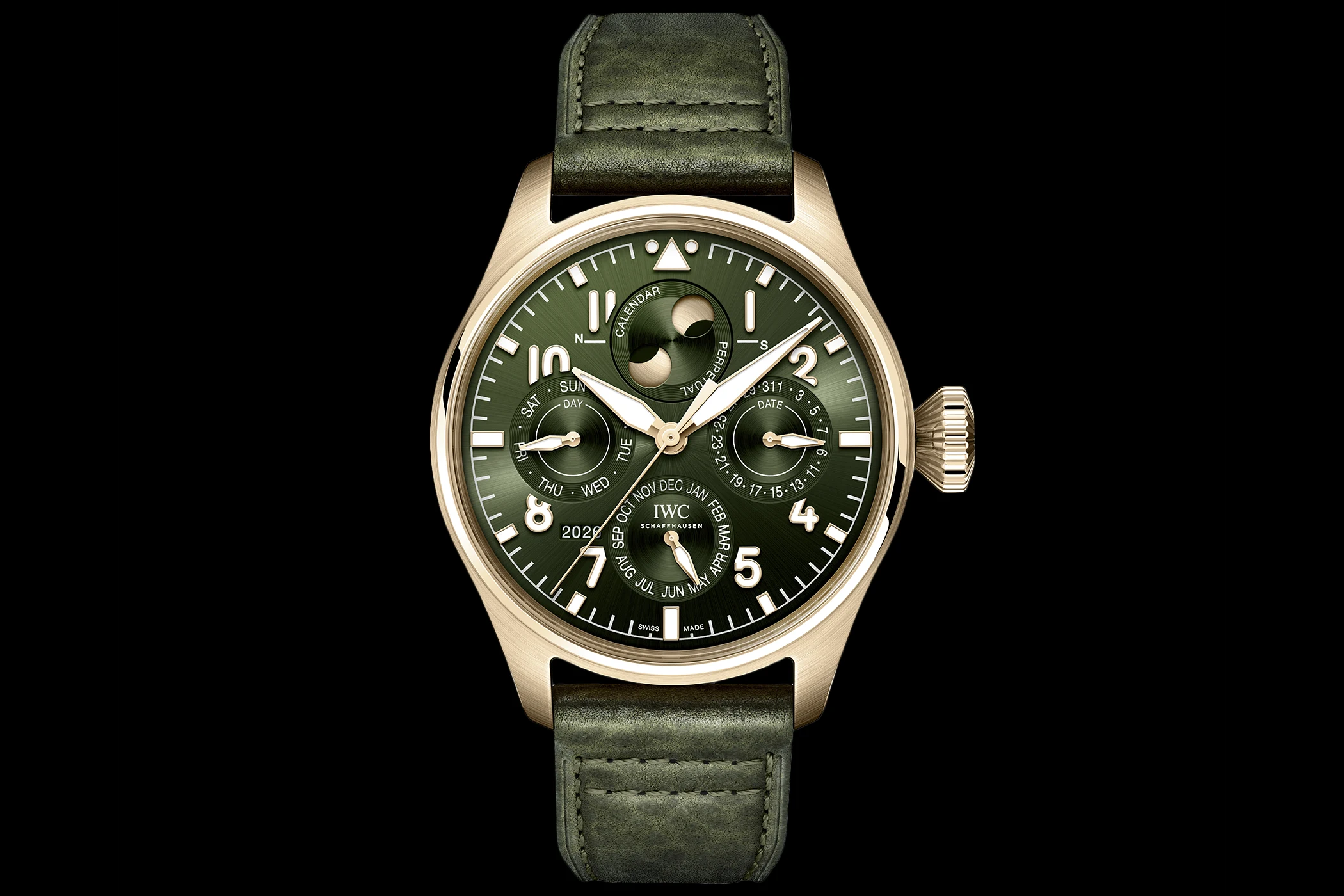 The Big Pilot’s Perpetual Calendar Ceralume (reference IW505801) embodies two of these key features: the perpetual calendar, in the form of the automatic calibre 52616, and the material innovation represented by Ceralume. The arrival of this watch is, in principle, no surprise: two years ago, a one-off model with a case made of glow-in-the-dark ceramic was spotted on the wrist of racing driver Lewis Hamilton. But now, at last, this type of case – fired from a combination of ceramic powder and Superluminova – can also be found in the regular collection, albeit initially only in a limited edition of 250 pieces.
