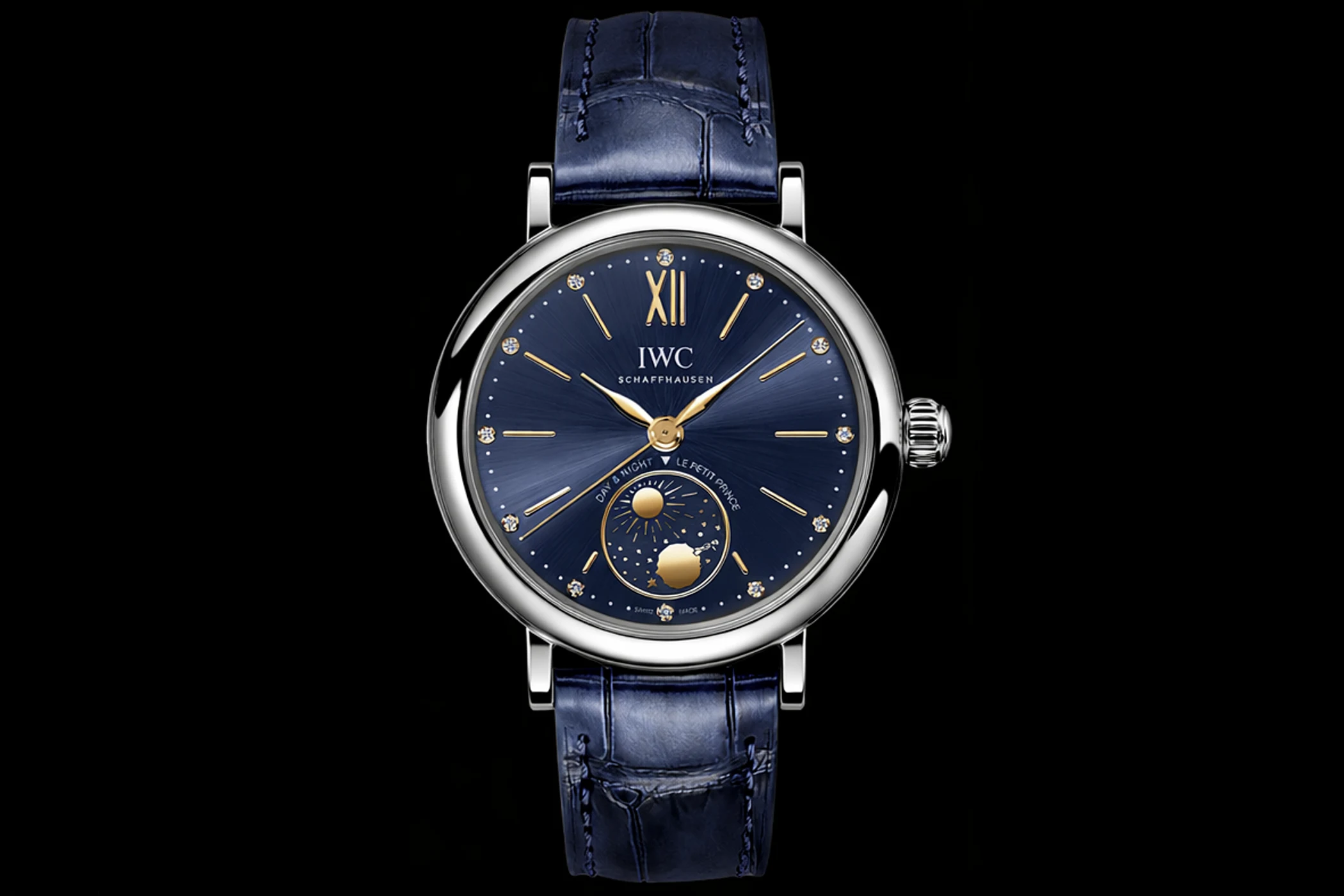 A quiet highlight of this year’s collection, however, is a 34-millimetre Portofino Day & Night (reference IW459806). This steel model with gold accents features a day/night indicator at six o’clock, and it is precisely here that the tiny miniature prince stands on the moon, gazing up at the starry sky. This watch is the most delicate and romantic star of this year’s new collection, a world away from pilot’s chronographs, astronaut’s GMT watches and solid-gold tourbillons. Yet the sight of it makes you pause and smile. And on top of that, it demonstrates just how wide the spectrum of the typical IWC watch world is.
