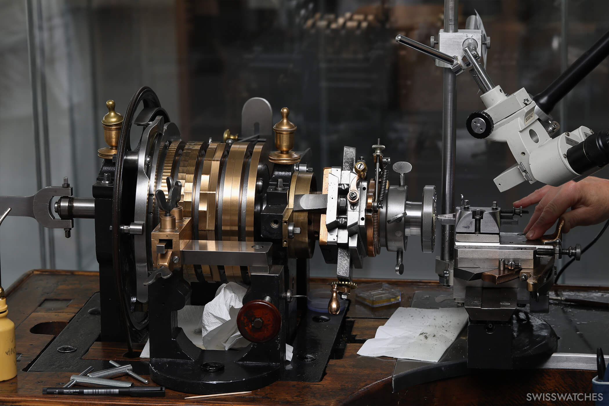 Watchmaker Antoine LeCoultre was a keen inventor with a penchant for precision. In 1830, he invented a machine for cutting pinions, aka small but very important gear wheels. For the first time, components could be produced consistently, identical in shape and matching to exact specifications. Today, his ground-breaking machine sits in the Jaeger-LeCoultre manufacture’s Heritage Department, which we take a look at later. Antoine LeCoultre went on to develop precisely calibrated cutting and stamping machines, allowing him to cut smaller components than had ever been seen before.