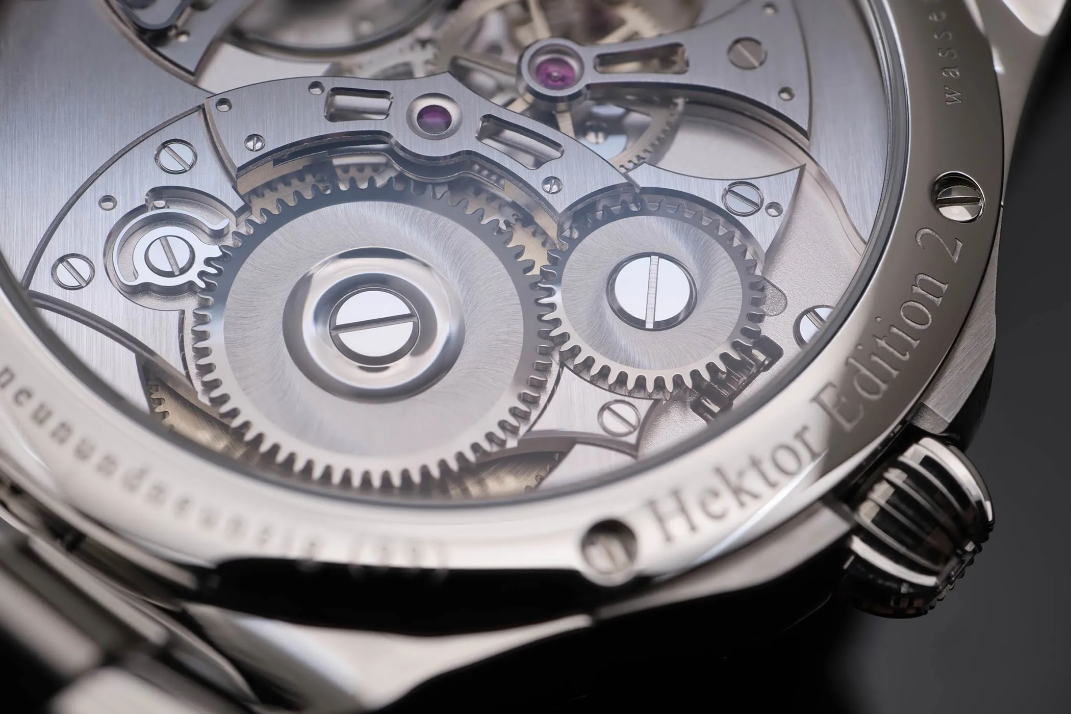 While the first Hektor was available with dials in green, blue and grey, the dial of Edition II is exclusively black. The model is limited to 99 pieces, available immediately and costs 19,999 euros plus VAT.