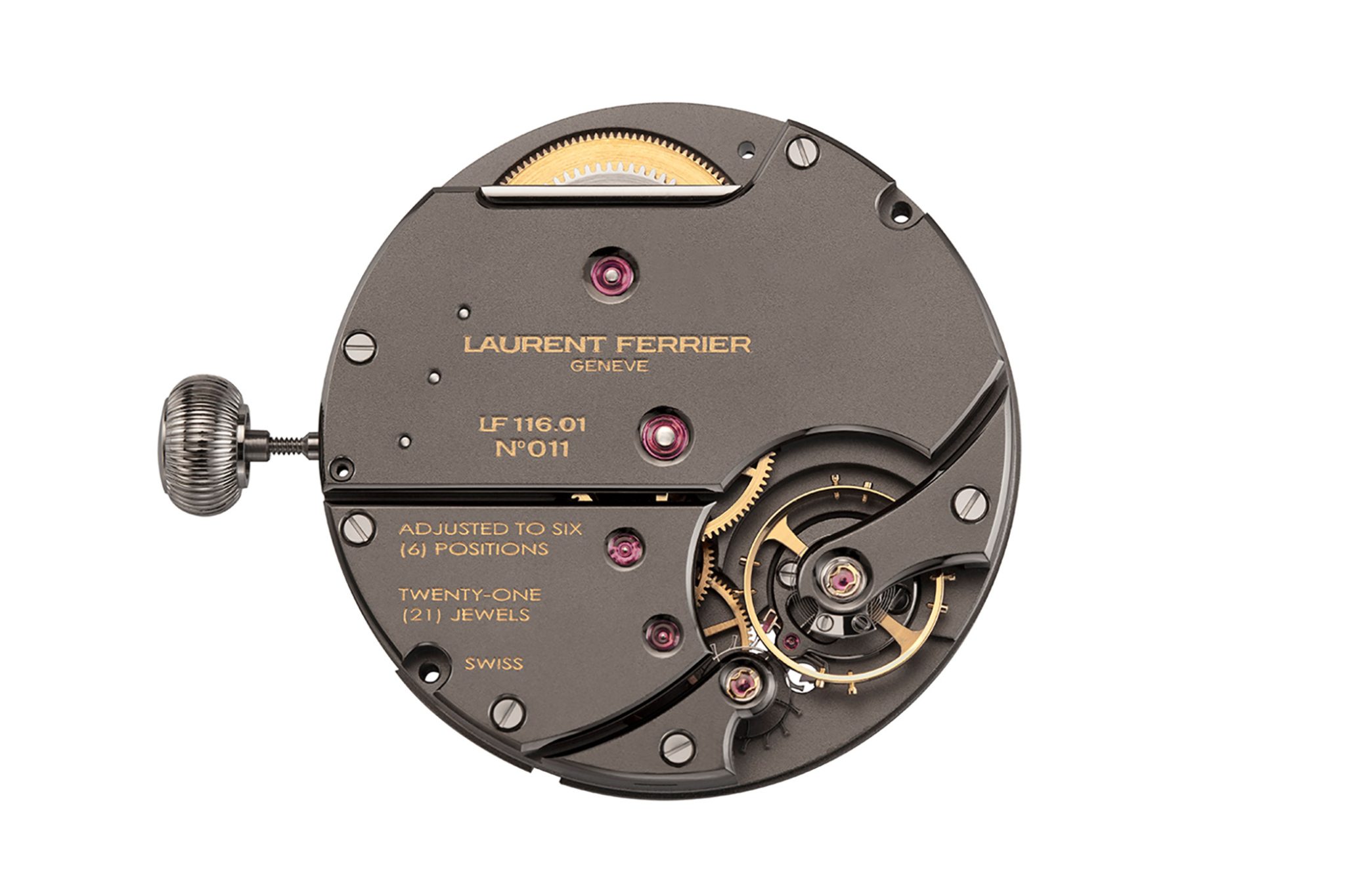 The commemorative watch is housed in a 40 mm Grade 5 titanium case, which, according to the horology house, helps to create a classic timepiece that is more “youthful”. Furthermore, it marks the first time that Laurent Ferrier has used Grade 5 titanium. The alloy is known for being light-weight, corrosion-resistant, and hypoallergenic. Additionally, the case features the maison‘s “ball-shaped” crown, which is also titanium, and helps to allow for ease of adjustment.