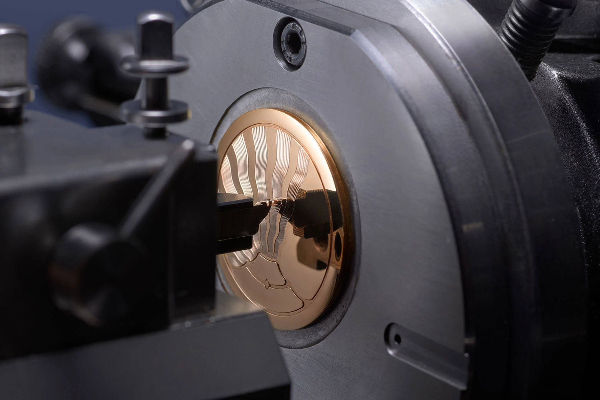 A major challenge for the guillocheurs was the curvature of the front of the 37-millimetre case. Pressure and cutting depth must be constantly adjusted to achieve a consistently precise engraving depth. The process takes 16 hours per dial.
