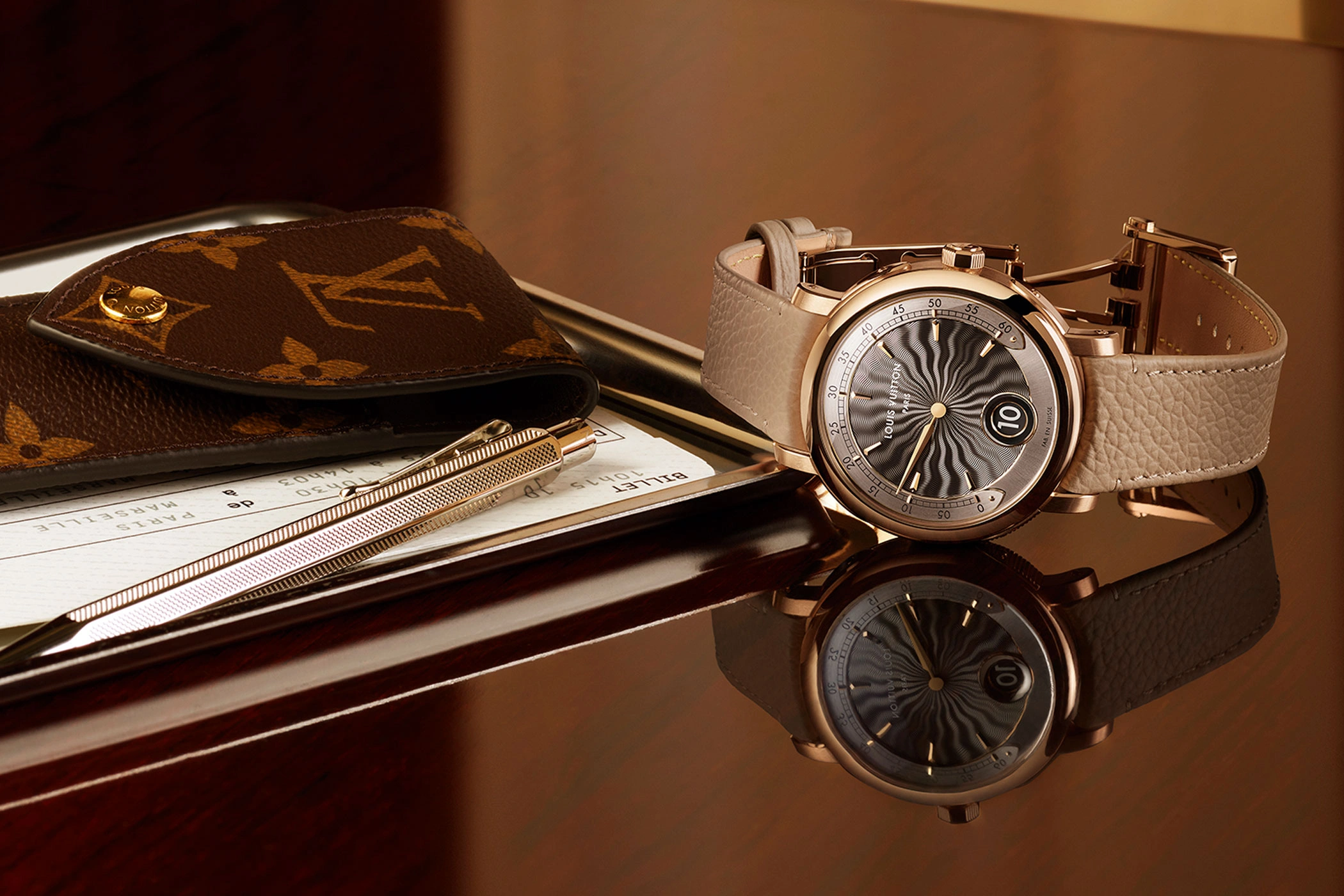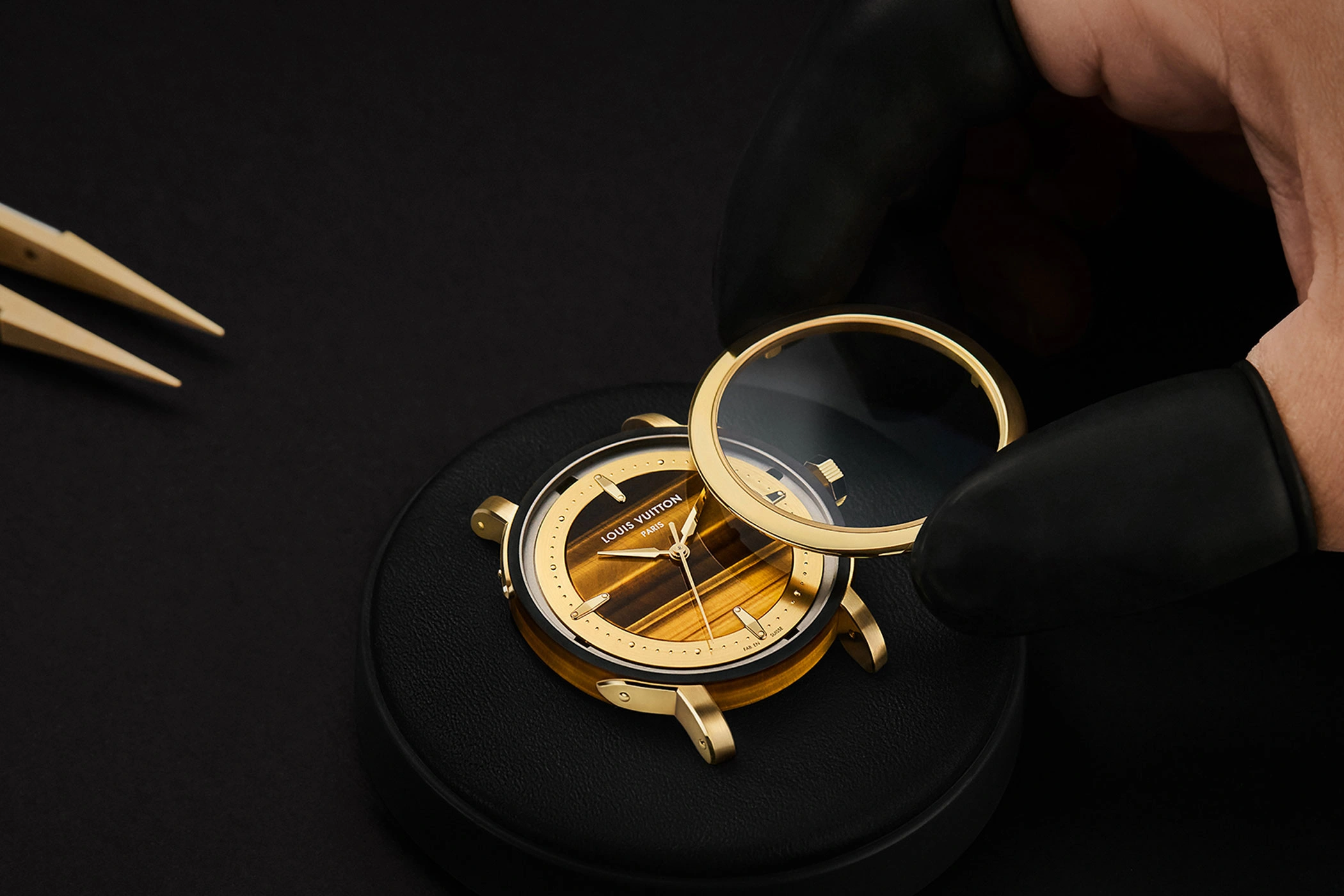 From the world time watch to a flying tourbillon, a sophisticated GMT, a melodious minute repeater and a shimmering tiger’s eye – we take you on an adventurous journey of new products that symbolise the transformation Louis Vuitton has undergone in recent years. This also applies to the unisex Escale collection launched in 2014. It is inspired by the legendary suitcases with brass fittings and corners by French designer Louis Vuitton. The result: four newly developed calibres, which are making their debut in five new Escale models. There is also a limited edition gemstone version.