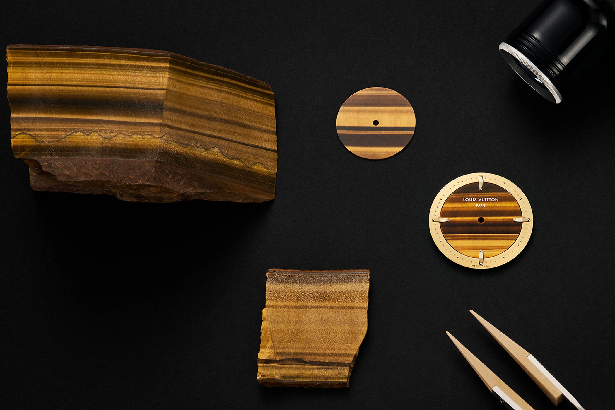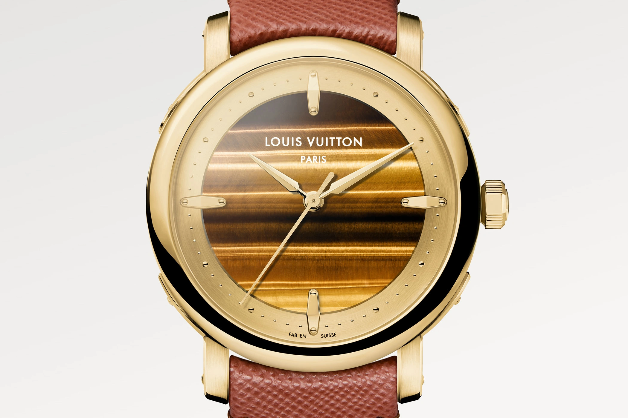 After turquoise and malachite, Louis Vuitton continues its journey of discovery through the treasures of our earth, choosing tiger’s eye as its latest stop. The shimmering stone – ranging from amber to dark brown – is considered a protective talisman that wards off evil. This makes it the perfect travel companion. Which brings us back to the source of inspiration for the Escale line: the iconic Louis Vuitton suitcase.