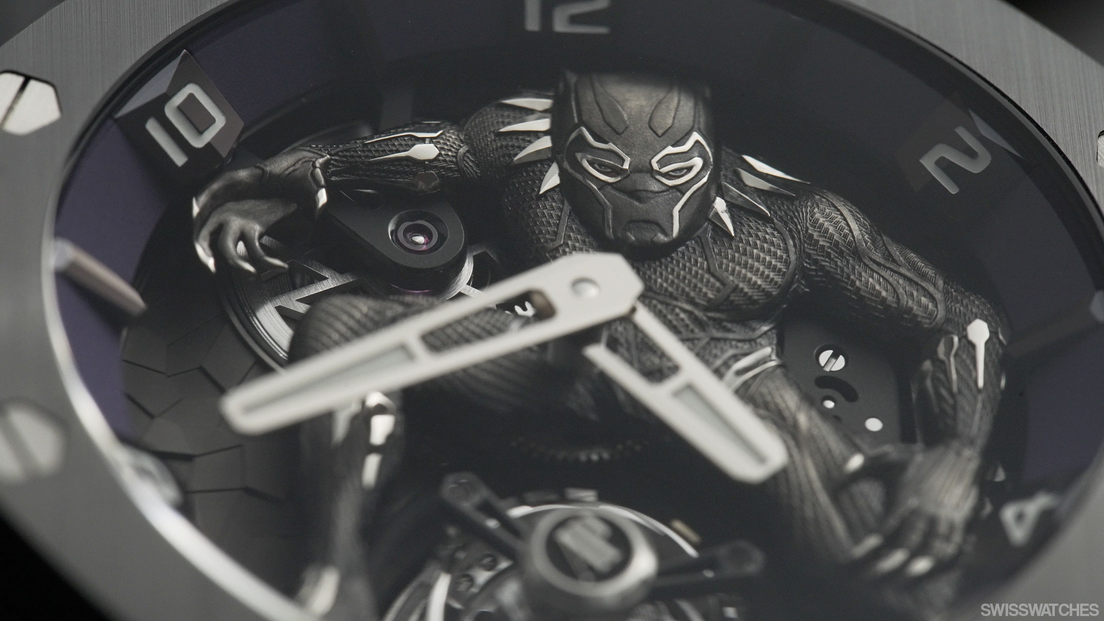 The ergonomic watch unites technology and complexity with pop culture and superheroes – something not as unusual as one might suspect. In fact, the use of comic characters on watches dates back to the 1930s. Perhaps the most famous example is the designer of the Royal Oak, Gerald Genta, with his yellow-gold pink panther watch.