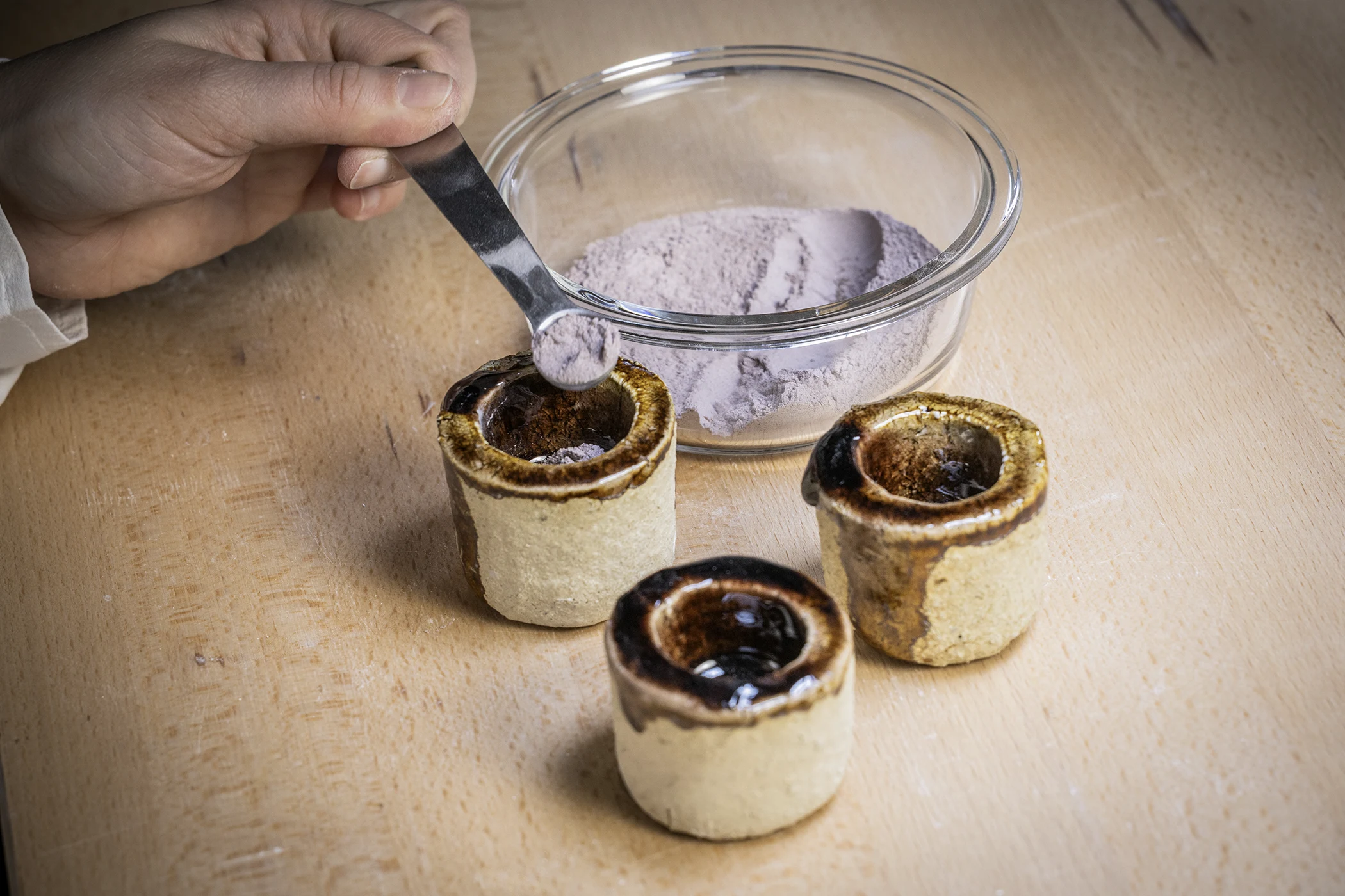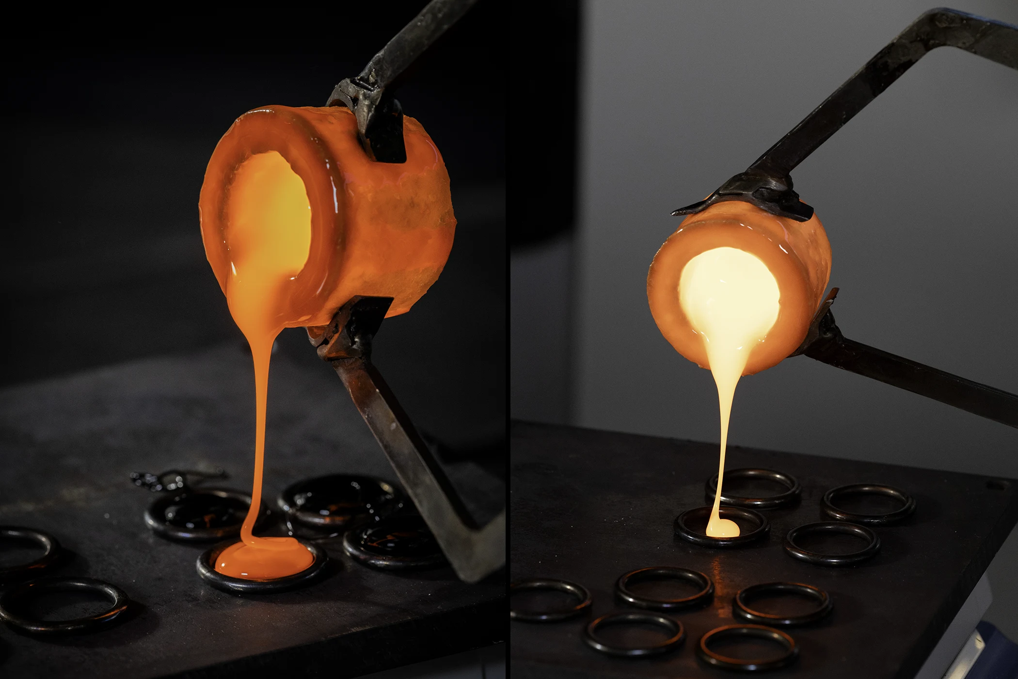 As mentioned earlier, the enamel work involves a complex process comprising several firing stages. Initially, the enamel was worked for over 30 hours at temperatures below 500°C to ensure an even colour distribution. This was followed by two further firings at temperatures exceeding 1,000°C, which removed air bubbles and stabilised the material. The surface was then shaped by hand using a stamping tool before the final firing, which prepared it for its final form.