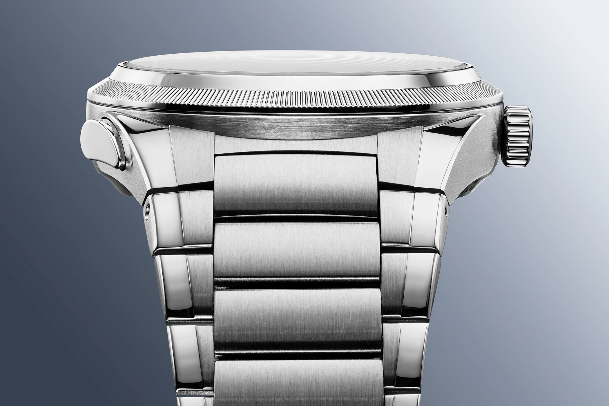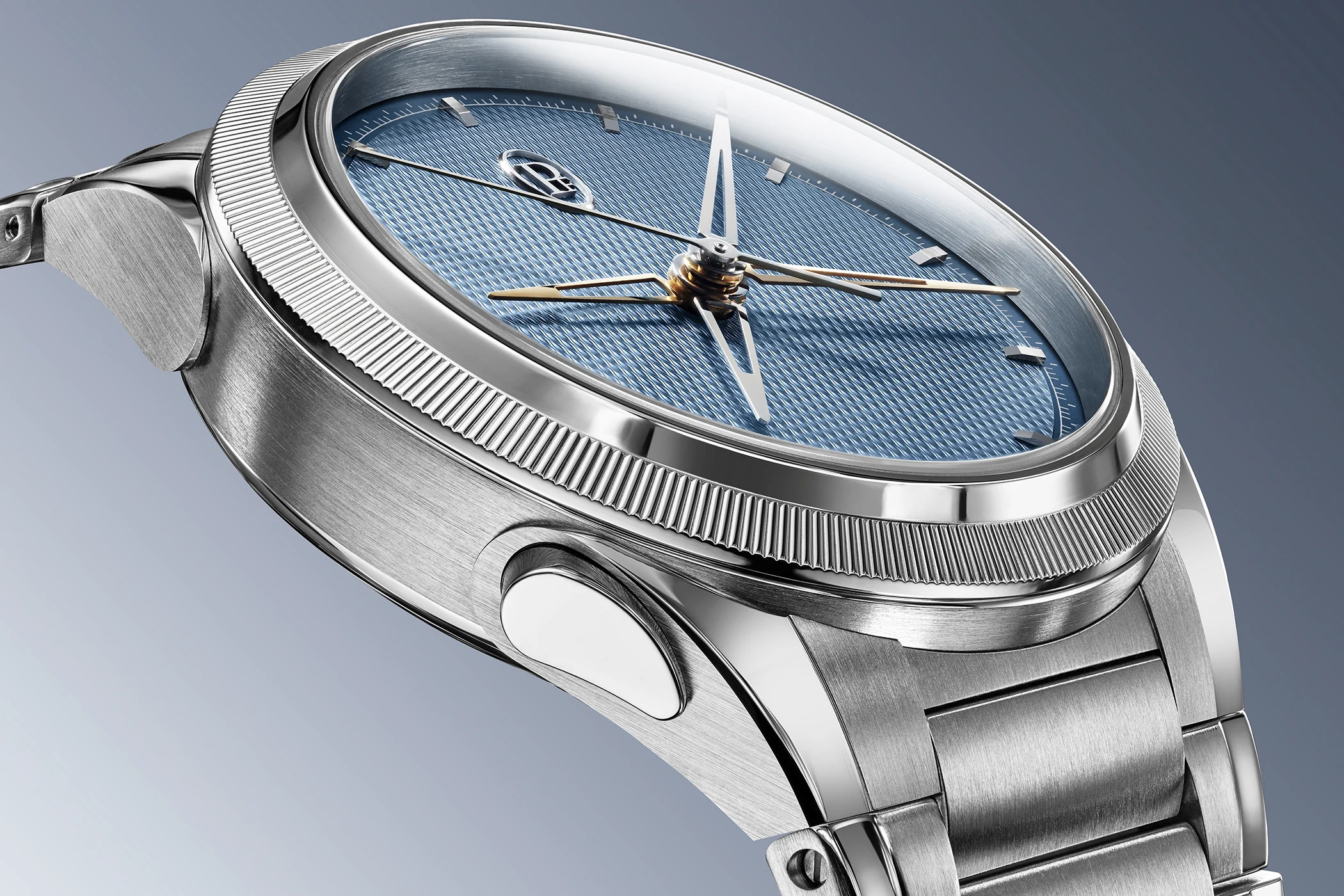 The innovative chronograph developed by Parmigiani, the first of its kind, offers several advantages: it allows for the purist design typical of the Tonda PF, which showcases the mineral-blue dial with its hand-guilloché barley-grain pattern to its full advantage. It also improves the legibility of both the time and the stopwatch reading. And it simplifies the operation of the chronograph by using just a single pusher.