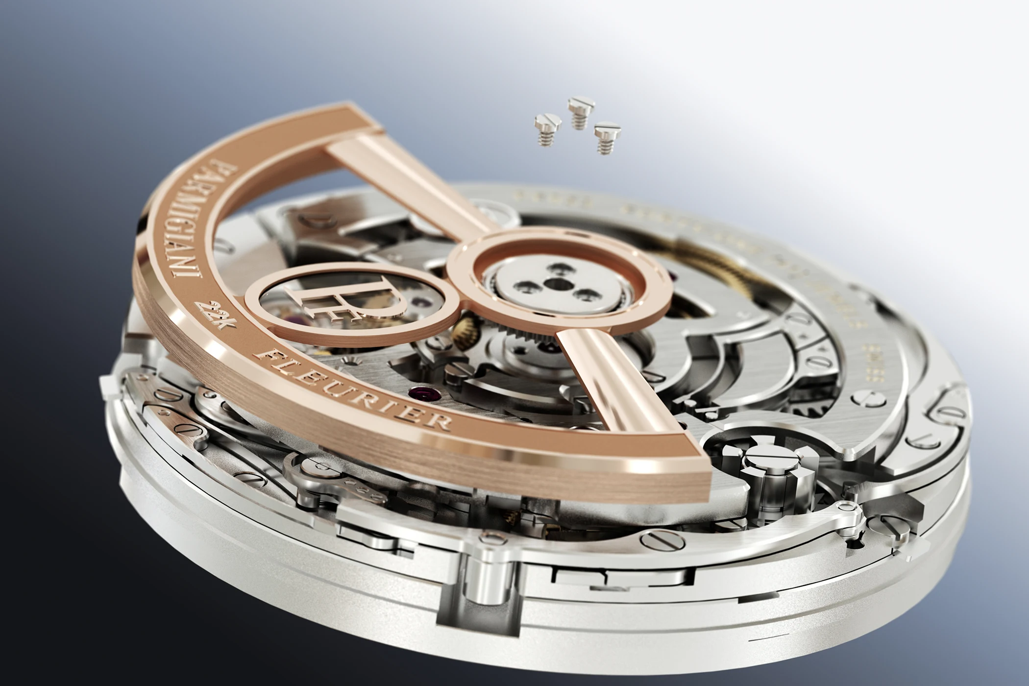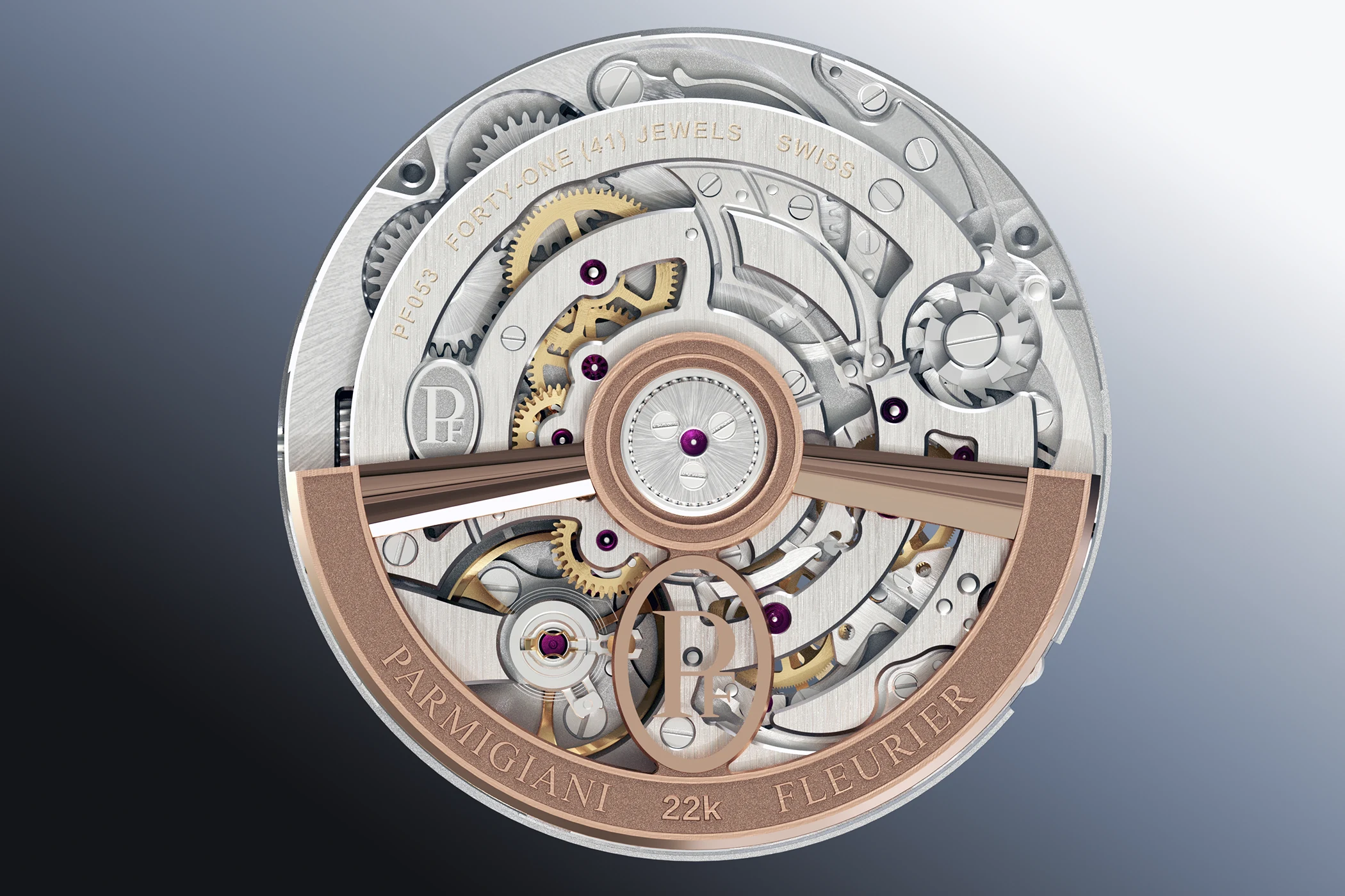 As is customary with Parmigiani, the brand pays meticulous attention to the finishing of the movement: through the sapphire crystal case back, one can see the 22-carat rose gold rotor with alternating sandblasted and polished surfaces, the skeletonised, satin-finished bridges, and their hand-beveled and polished edges.