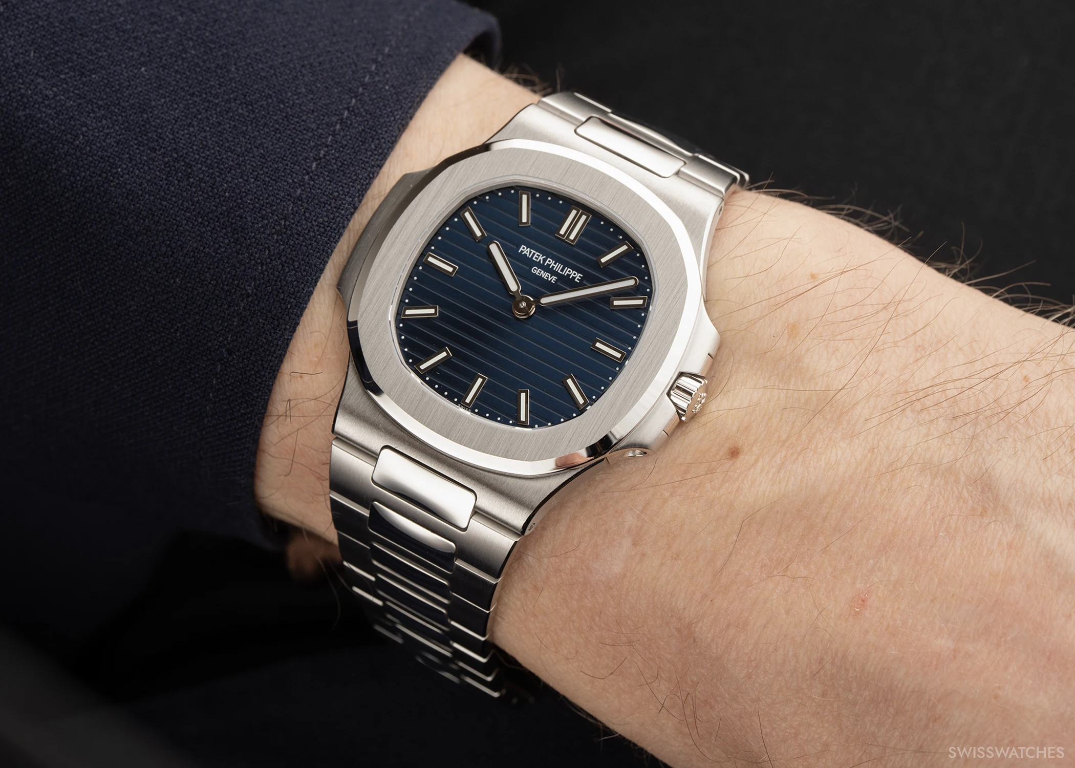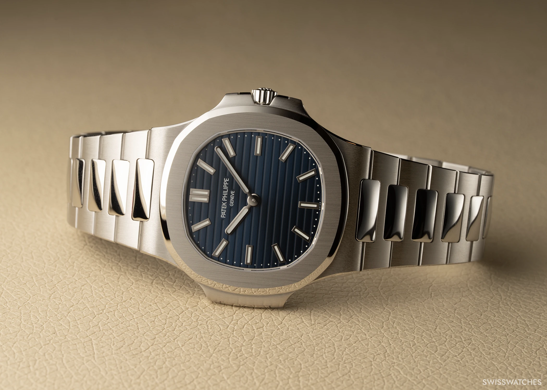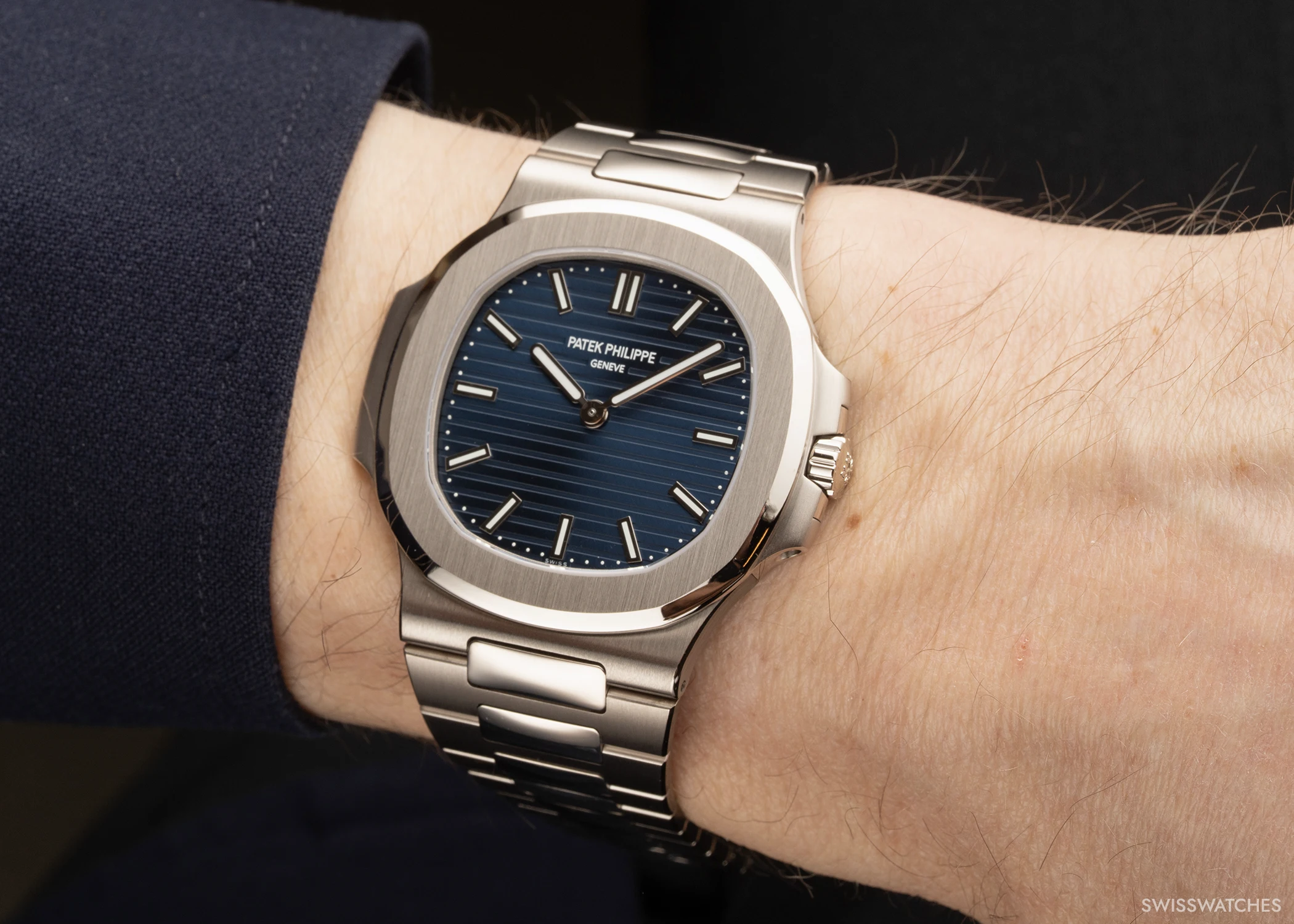 On the occasion of the 50th anniversary of the Nautilus, Patek Philippe celebrates the model in three limited special editions that highlight the defining characteristics of the original Reference 3700/1A. All three are united by a reduction to the essential display of hours and minutes. Each features a blue sunburst dial with horizontal relief embossing, applied baton indices, and baton hands in white gold with a white luminescent coating. In the Ref. 5610/1P-001 and Ref. 5810/1G-001, the applied baton indices are crafted from white gold, while the Ref. 5810G-001 is fitted with baguette-cut diamond indices (0.39 ct).