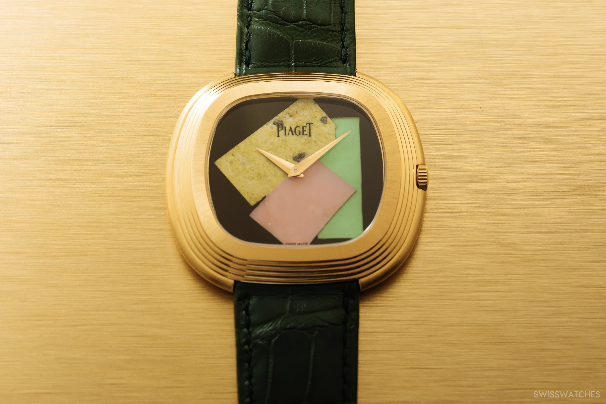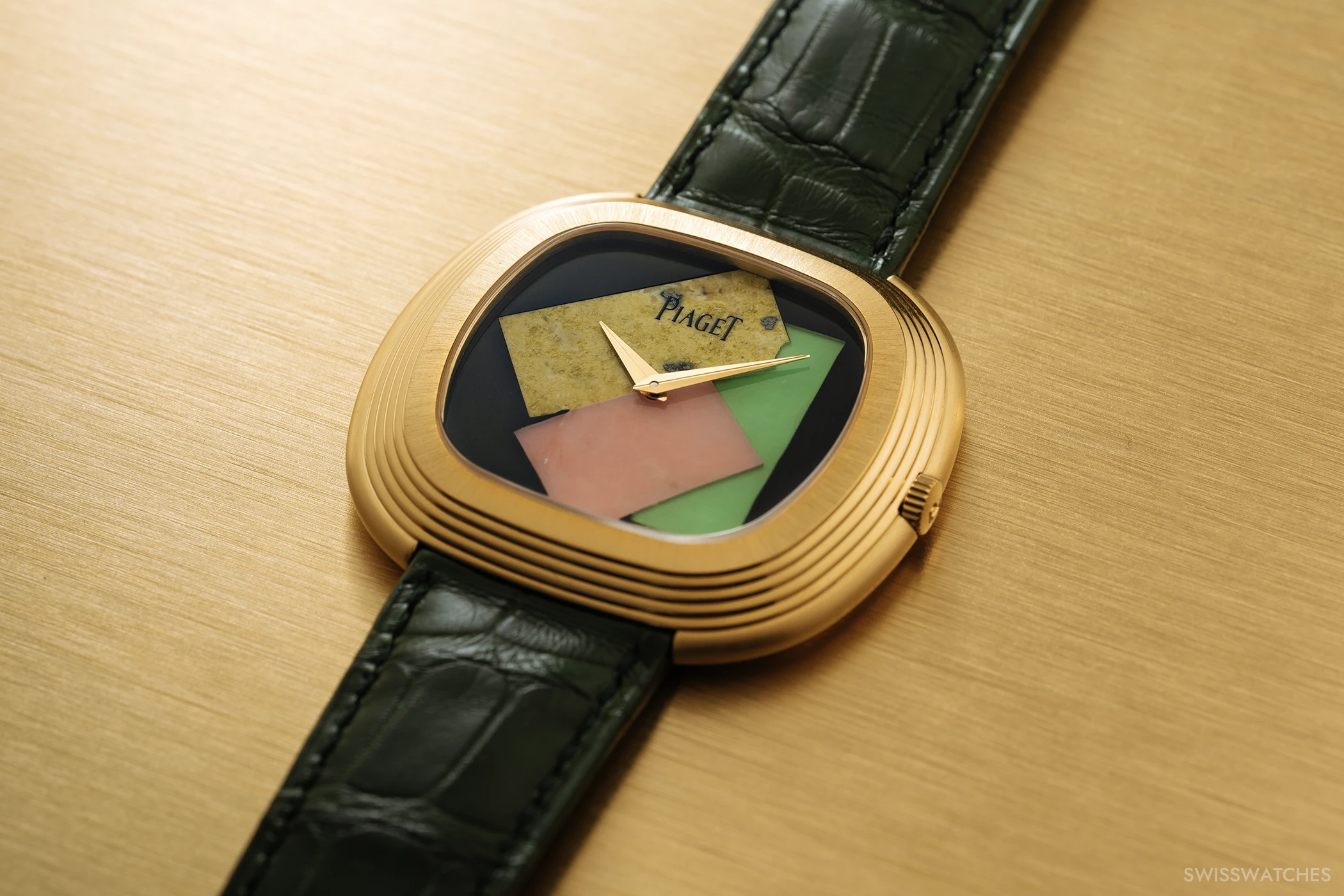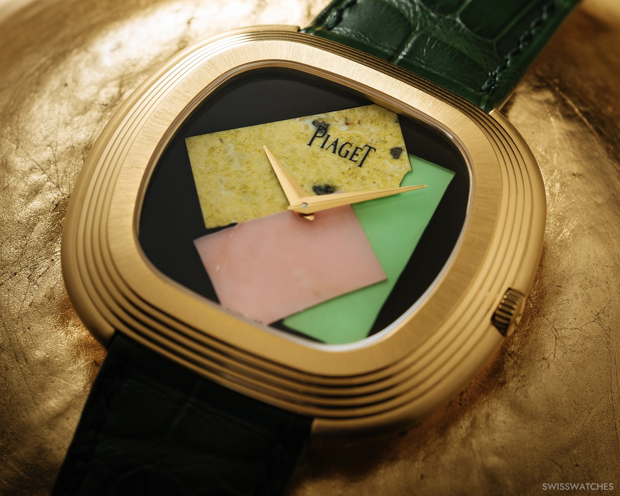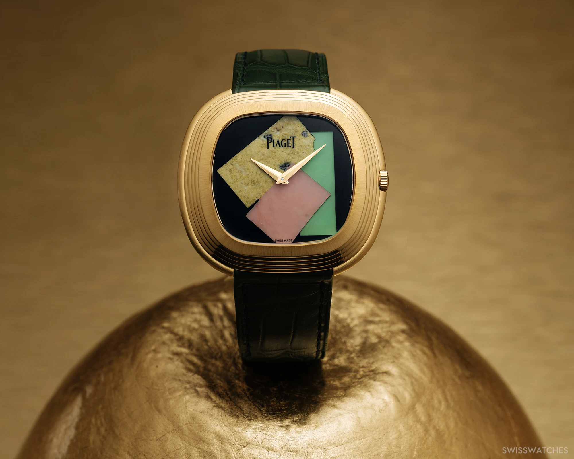 Each stone is individually cut, shaped, and fitted by hand, with tolerances of mere microns. The result is an abstract, textured dial that hints at Warhol’s collaged compositions without literal reproduction. This choice of marquetry, which is actually traditionally used in furniture and jewellery, underscores Piaget’s remarkable position within the luxury watch industry, where métiers d’art such as engraving, enamelling, and gem-setting are performed entirely in-house at the maison’s Ateliers de l’Extraordinaire in La Côte-aux-Fées.