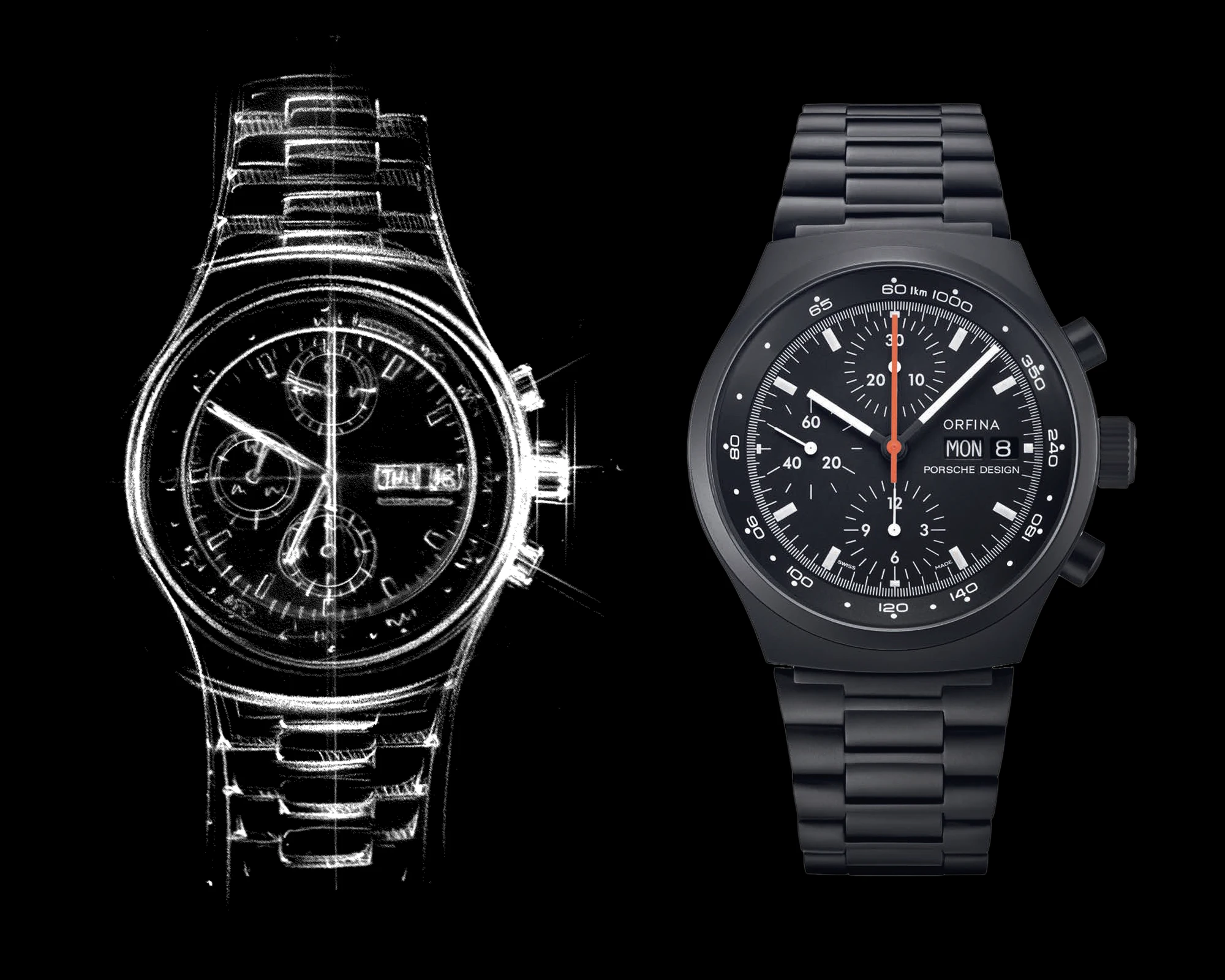 That statement perfectly captures what became the world’s first all-black production wristwatch. Just like the non-reflective dashboard of a Porsche 911, not only the dial but also the bezel, case, and bracelet were matte black. A black dial with white hands and a red seconds hand may sound commonplace today, but at a time when traditional wristwatches were increasingly replaced by fashionable quartz models and treated as jewellery, the concept was revolutionary. A timepiece stripped of any ornamentation, designed purely for function, naturally appealed to those for whom every second mattered: professional racing drivers.