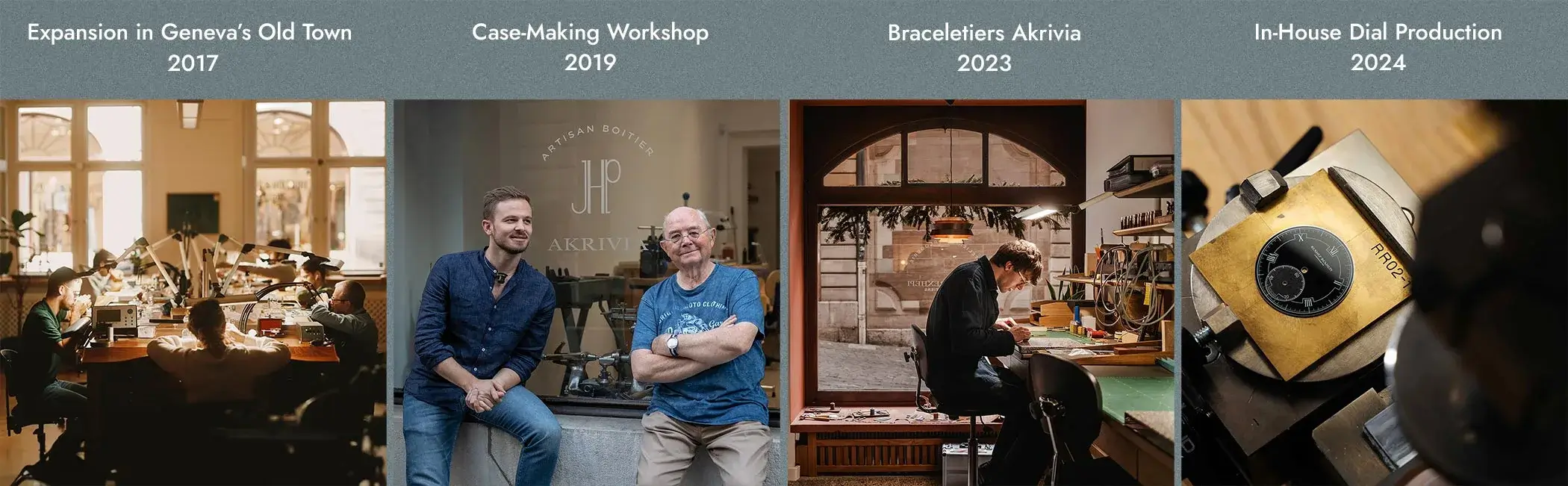 Walking along the Grand-Rue in Geneva, it is hard not to notice how much of Rexhep’s world now lives here. There is the dial workshop, where Grand Feu enamel work is now done in-house. There is the case workshop, where, until early last year, the late Jean-Pierre Hagmann shaped cases entirely by hand. His passing marked the end of an era, but not before he had passed on something more valuable than style alone: a way of thinking about proportion, construction, and case-making discipline. Then there is the recently launched watch school, where Rexhep, together with his own teacher, Jean-Marc Figols, helps train the next generation of watchmakers.