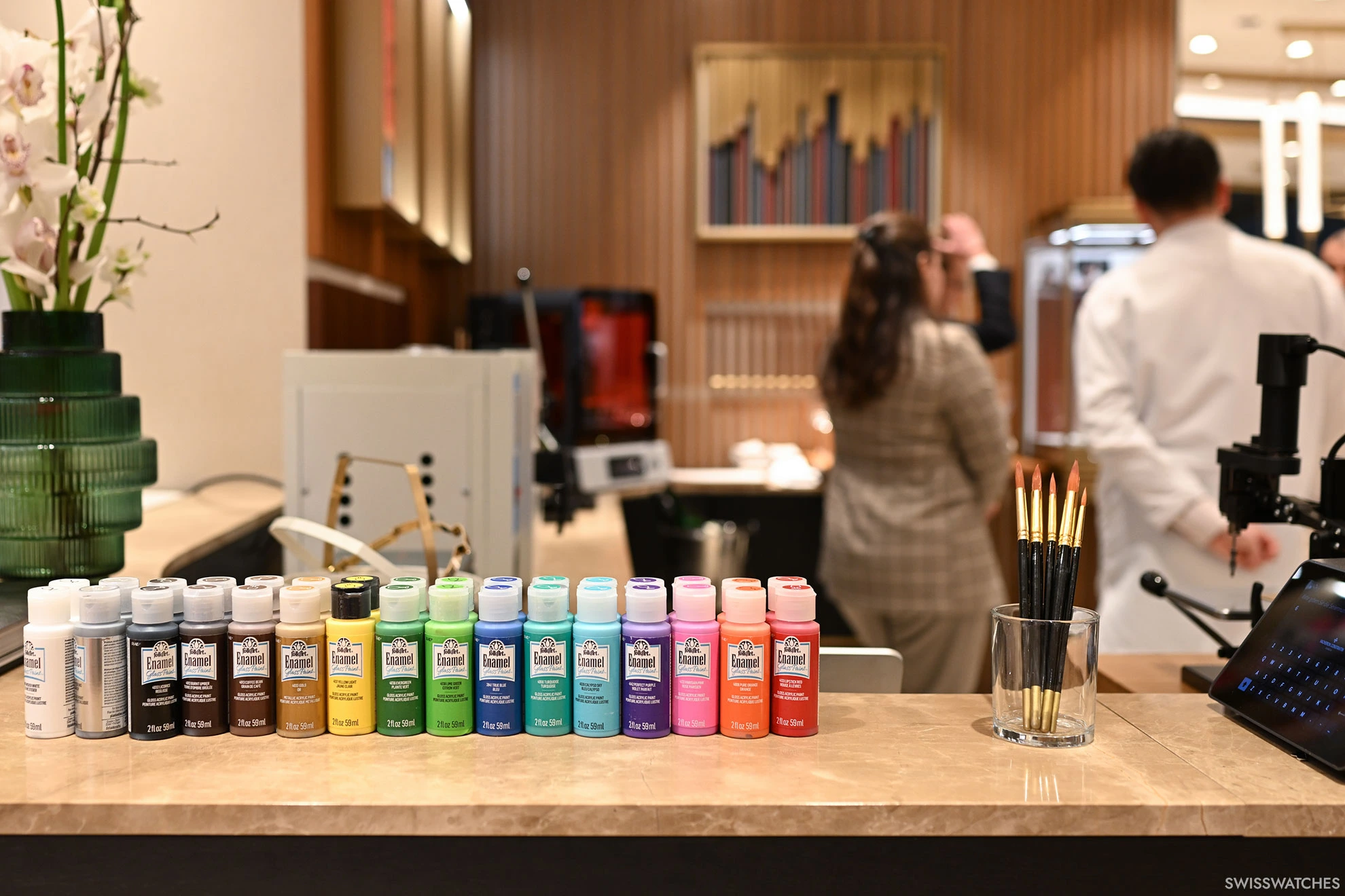 By working on oversized dial blanks, guests got an impression of how delicate and challenging the actual enamelling on a significantly smaller scale is.