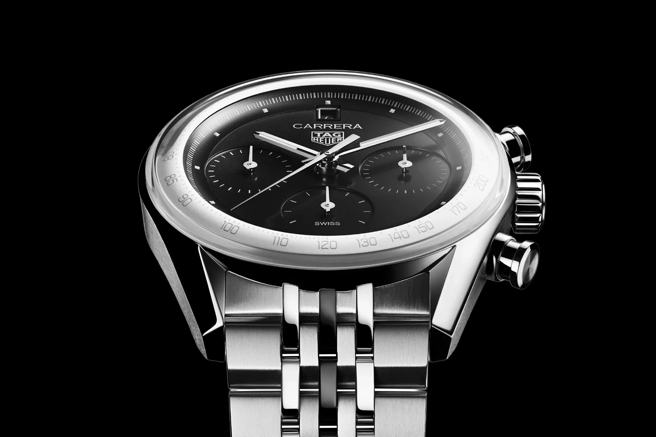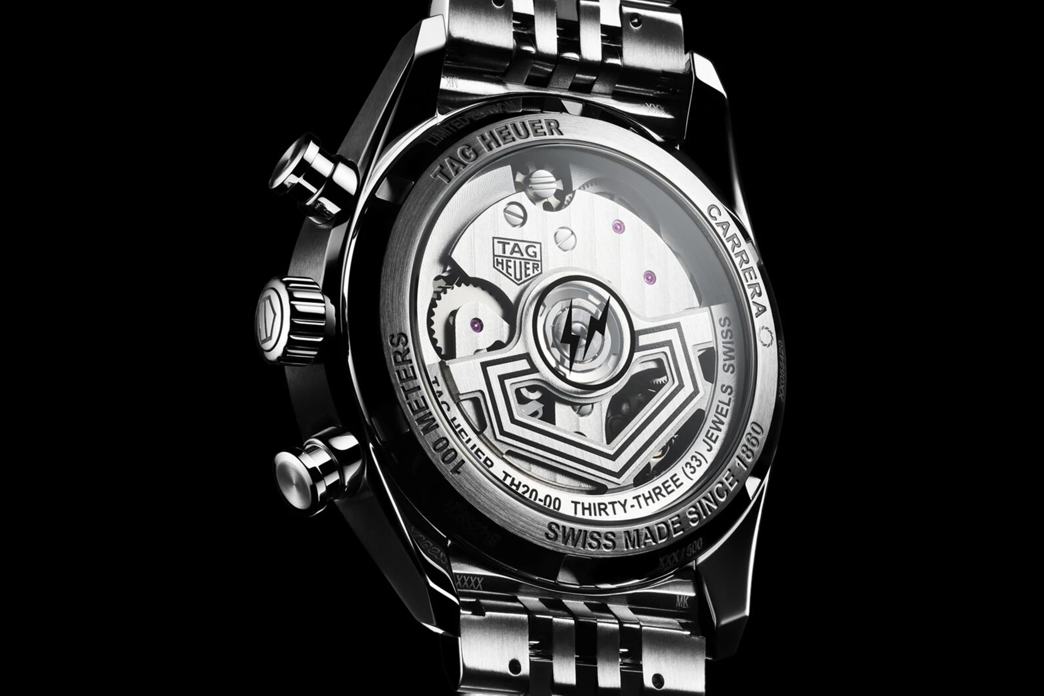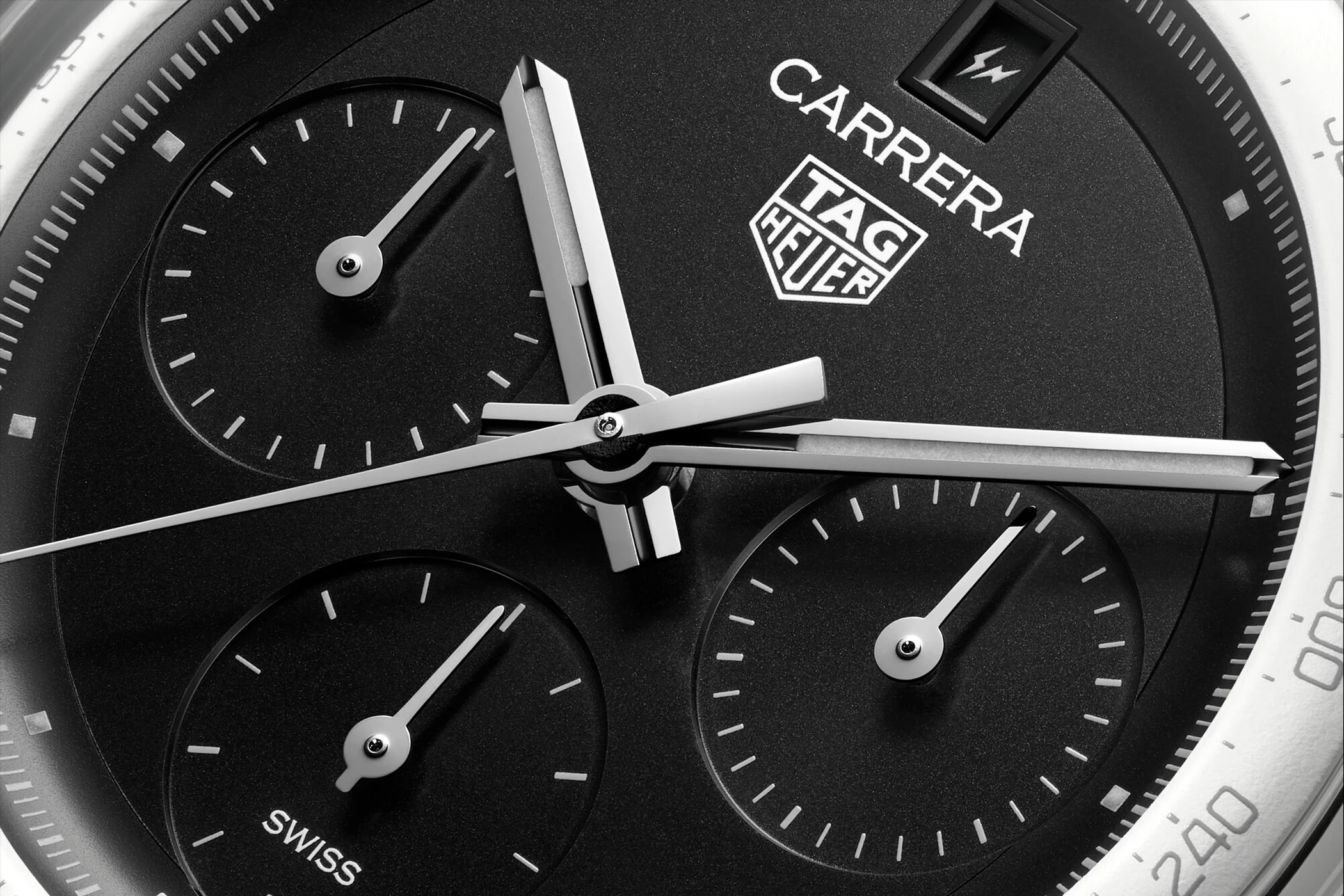 The 39-millimetre stainless steel case combines polished and finely brushed surfaces. The curved sapphire glass with double anti-reflective coating ensures maximum transparency and a harmonious design.The screw-in sapphire glass case back, which is engraved with a limited and numbered special engraving, provides a view of the movement. The water resistance is 100 metres.The model is worn on a seven-piece stainless steel bracelet that features the typical TAG Heuer “Beads-of-Rice” structure. The central links are in black PVD and provide a clear contrast to the stainless steel surface.