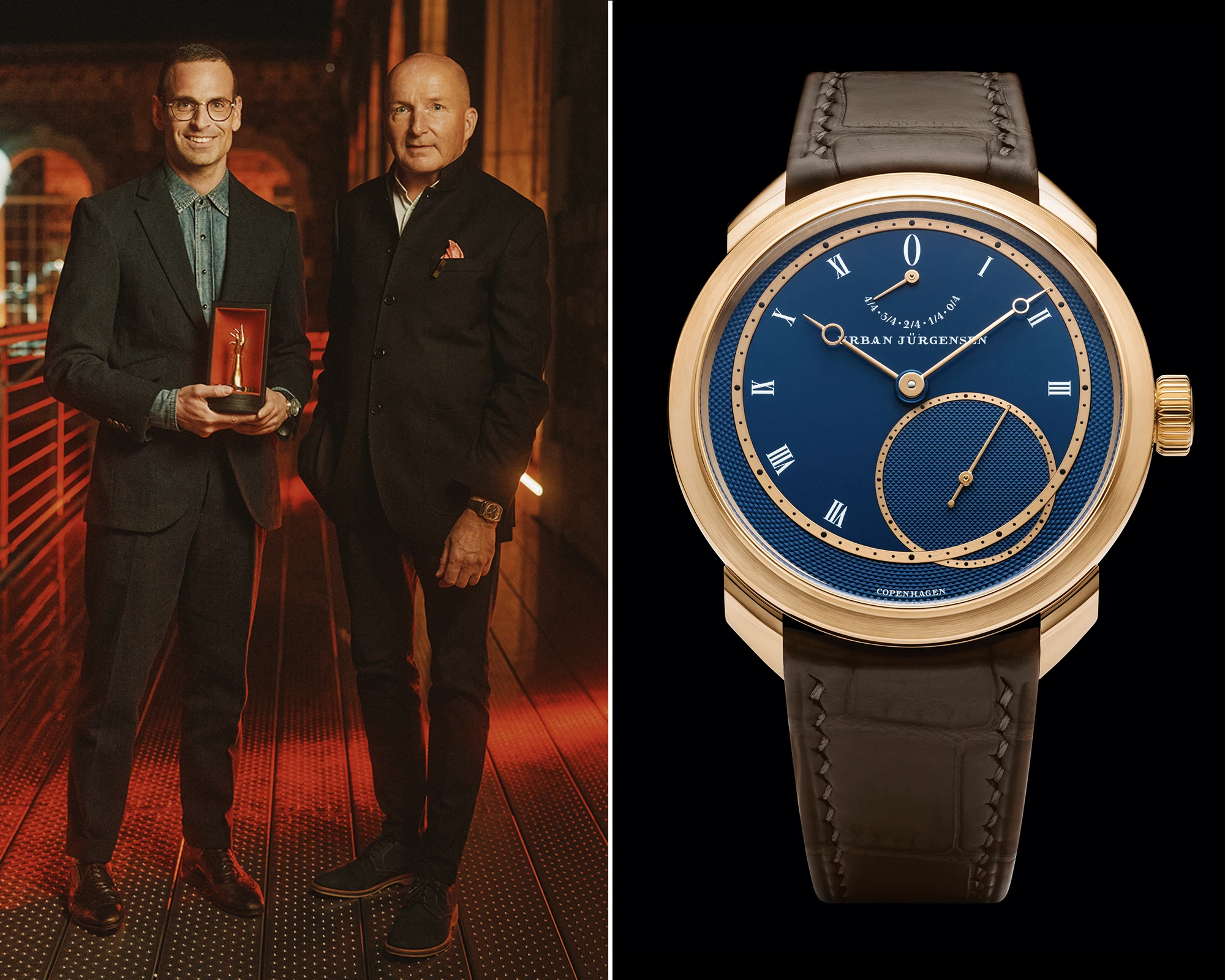 Urban Jürgensen, a brand whose origins date back to 1773, marked its official return this year with its collection comprising the UJ-1 Tourbillon, UJ-2 Time-Only and UJ-3 Perpetual. At present, Urban Jürgensen timepieces are manufactured and assembled entirely within Kari Voutilainen’s watchmaking facilities in Switzerland. Voutilainen also serves as co-CEO of the brand, alongside Alex Rosenfield, who is based in Los Angeles. The UJ-2 Time-Only has now been awarded the Men’s Watch Prize, which underscores the brand’s noteworthy comeback and honours the best men’s watch with the following displays: hours, minutes, seconds, date, power-reserve display, or classical moon-phase. On the dial, the UJ-2 Time-Only embraces classic restraint paired with asymmetry: the small seconds appear at 4:30, the central hands are positioned slightly higher, and the overall layout is completed by a power-reserve display at 12 o’clock. Through the sapphire caseback, one can admire the generously proportioned hand-wound calibre UJ-2, which uses a large single barrel, operates at a frequency of 2.5 Hz, and offers a power reserve of around 52 hours.