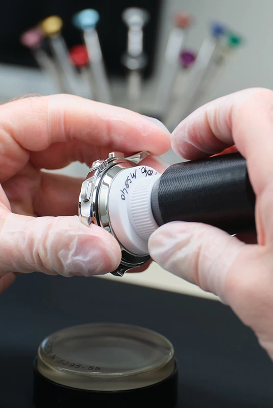 Der Kunde muss bei einem Automatikchronographen mit einer Bearbeitungszeit von zehn Wochen rechnen, bis er die Uhr zurückerhält. Allein die Qualitätskontrolle nimmt neun Tage in Anspruch.