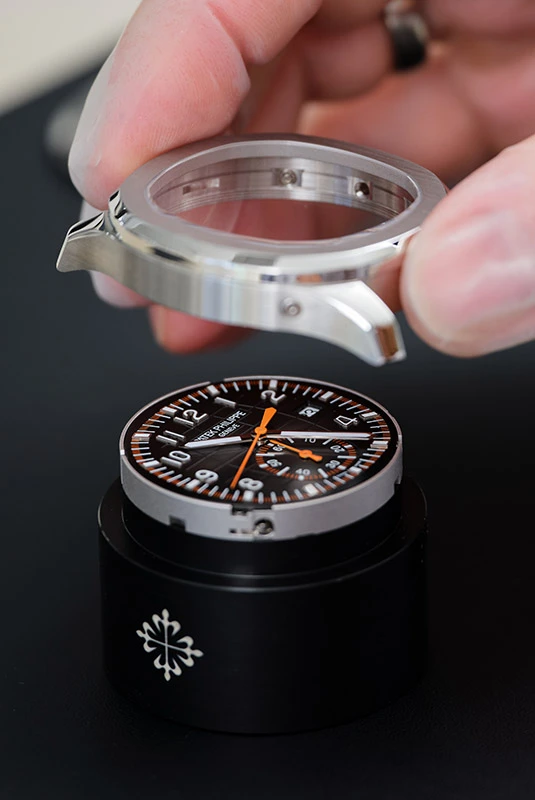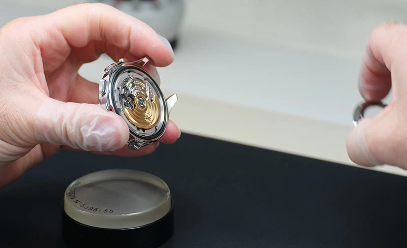 Insgesamt benötigt der Uhrmacher rund zehn Stunden, um das Werk des Aquanaut-Chronographen zu warten. Dazu kommt die Zeit für das Aufarbeiten von Gehäuse und Schließe sowie die mehrtägige Prüfung von Aufzug, Gangreserve und Ganggenauigkeit. Nachdem die Wasserdichtigkeit und die optische Perfektion kontrolliert wurden, kann die Patek Philippe wieder an ihren Besitzer ausgeliefert werden. Der kann sich freuen, denn das Werk ist wie neu: penibel gesäubert, optimal geschmiert und eingestellt sowie präzise einreguliert.