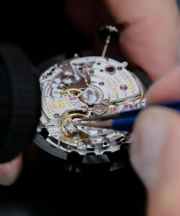 Patek Philippe empfiehlt für seine Uhren, alle acht bis zehn Jahre eine Wartung durchzuführen. Das stellt sicher, dass die Ganggenauigkeit erhalten bleibt und das Werk so weit geschmiert bleibt, dass kein übermäßiger Verschleiß entsteht.