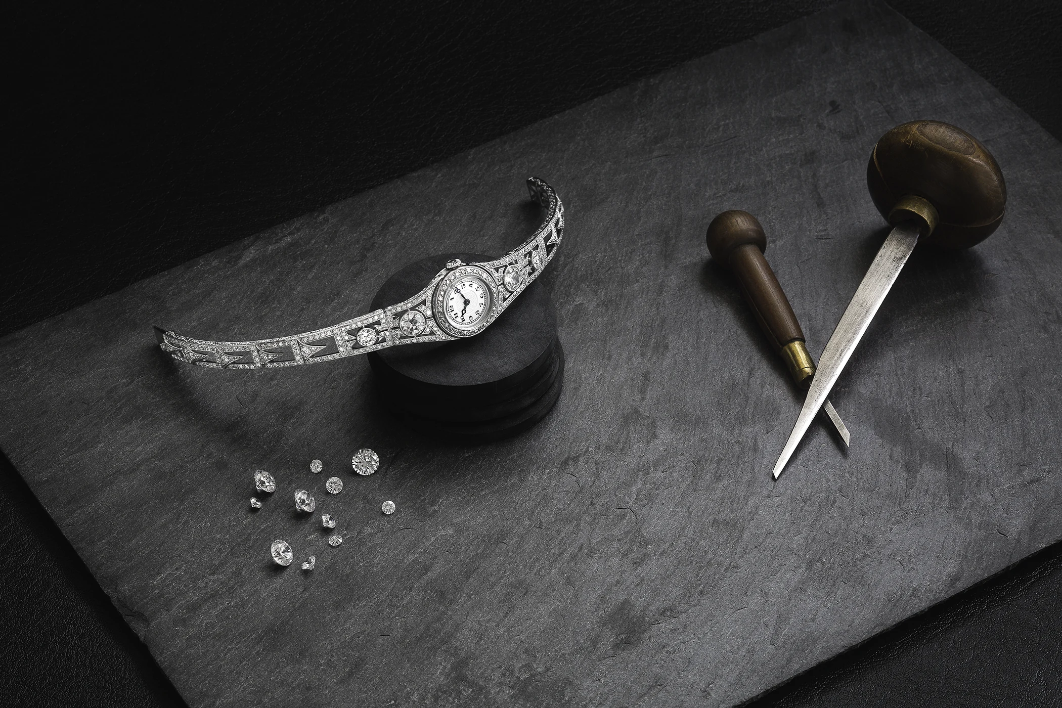 Gem-setting is a meticulous balancing act between jewellery artistry and watchmaking function. Working with extremely fine layers of gold or platinum, master gem-setters must respect both the structural constraints of the timepiece and the intrinsic properties of each stone. Every gem is individually selected, positioned and secured to maximise brilliance without compromising performance, whether in pavé, invisible settings or complex arrangements of coloured stones.
