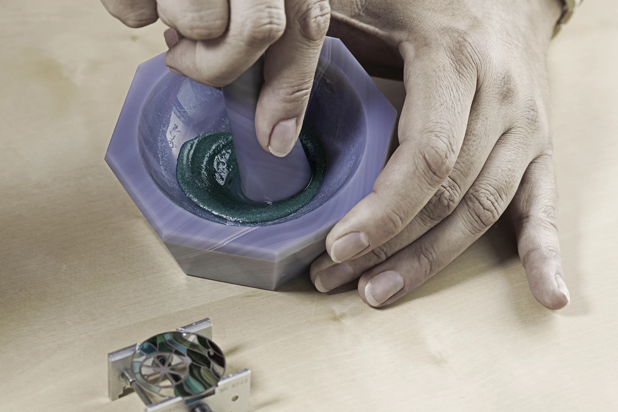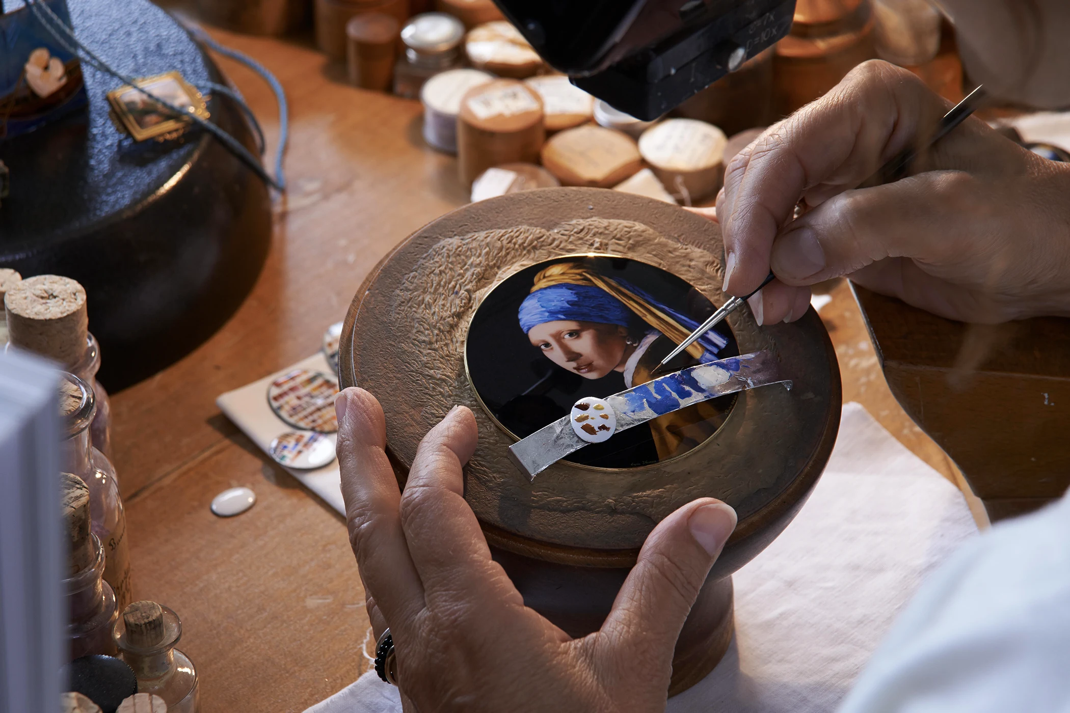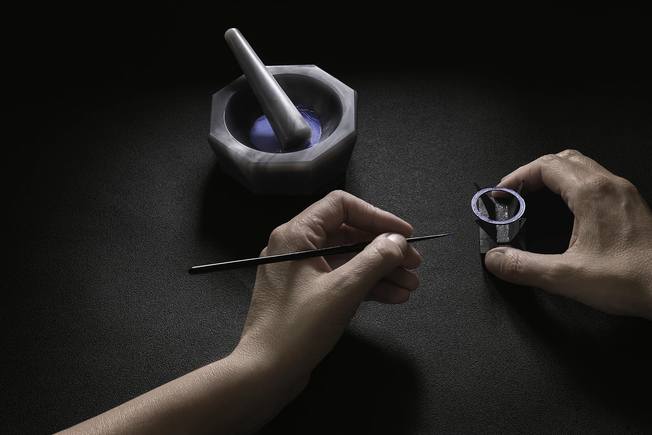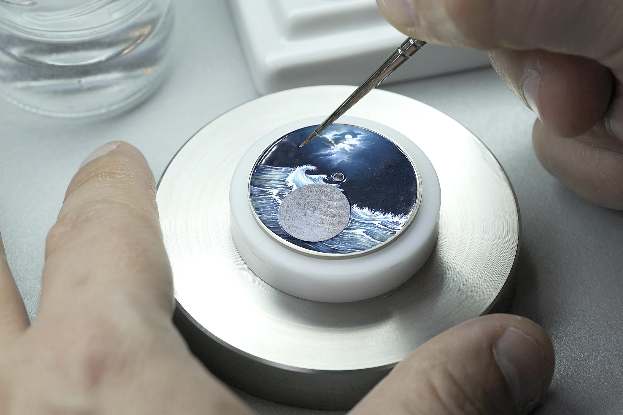 The difficulty lies in the sciences as well as the arts. “It asks for really special skills – not least the chemistry behind the firing process.” And the risk is cumulative: “Let’s say that you would create a very complicated dial with enamel, which requires 20 firings. A dial can be perfectly drawn and still fail in the kiln. You need to know how to work with the pigments.” Even colour order becomes critical. “For example, you could work with a blue colour and a red colour, but you need to know which goes in first or else the other could melt – so there is really a notion of chemistry. Enamel is very demanding work because there is always a risk.”